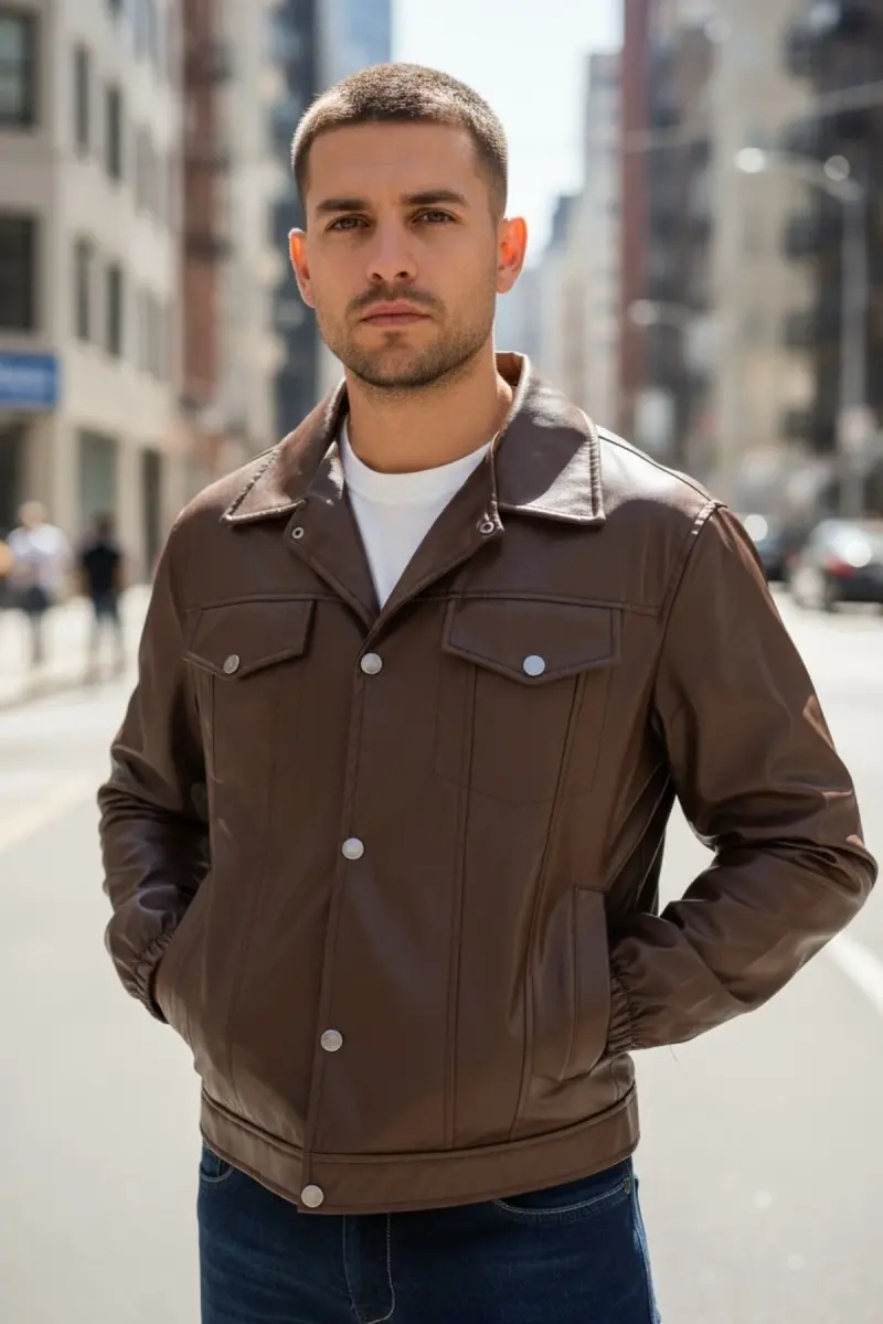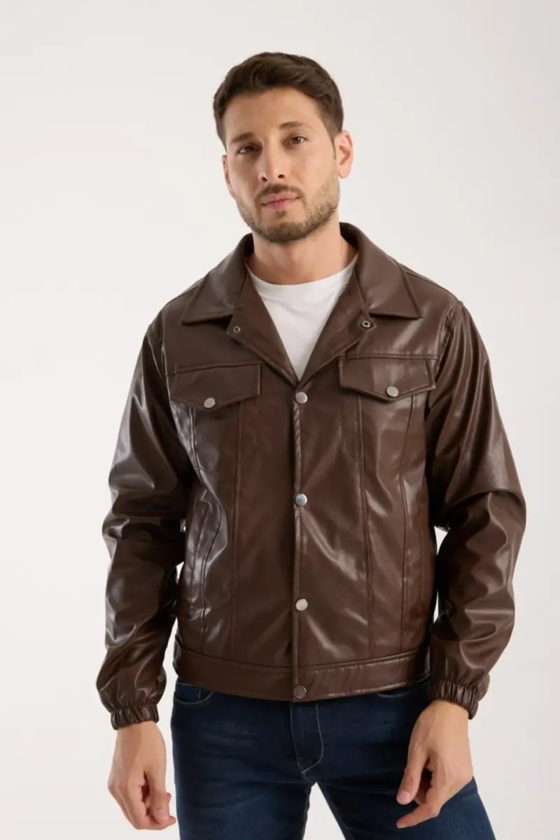 Mevsimlik Vintage Oversize Kısa Deri Ceket-KAHVERENGİ