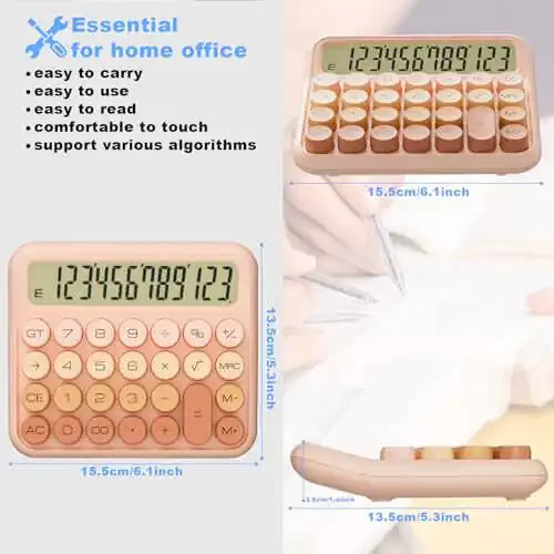 Механический калькулятор 12-разрядный сверхбольшой 5-дюймовый ЖК-дисплей, настольный калькулятор DECKLIT с батарейным питанием, большие кнопки, удобные для нажатия, настольные офисные калькуляторы, экран с наклоном 15° для детского калькулятора (градиентно-розовый)