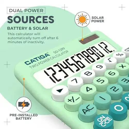 - Двойной источник питания: Калькулятор, работающий как от солнечной энергии, так и от батареи, обеспечивает вам непрерывное удобство использования.