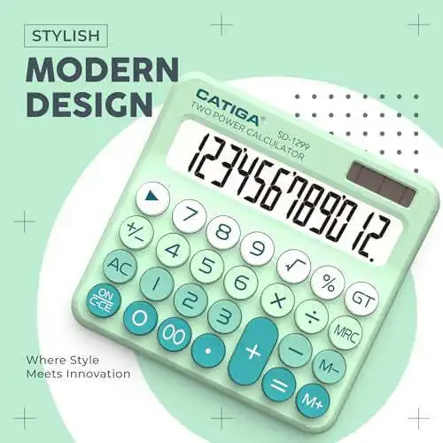 Механический калькулятор CATIGA с двойным питанием от солнца и батареи, 12-разрядный большой ЖК-дисплей, эстетичный и милый настольный калькулятор с большими кнопками, для дома, школы и офиса, SD-1299