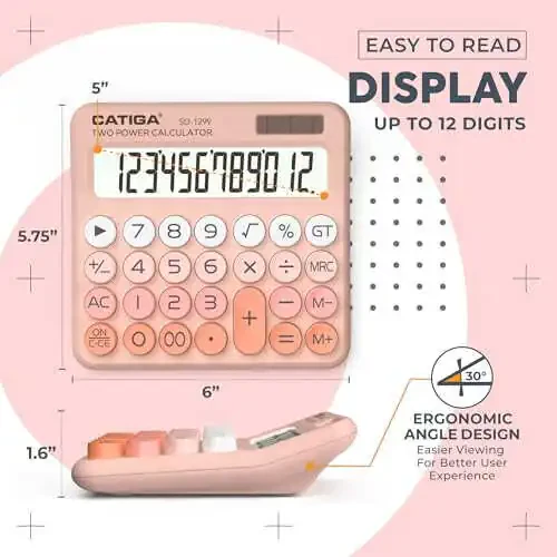Калькулятор CATIGA с механическими переключателями | Двойное питание | Большой 12-разрядный ЖК-дисплей | Для дома, школы, офиса