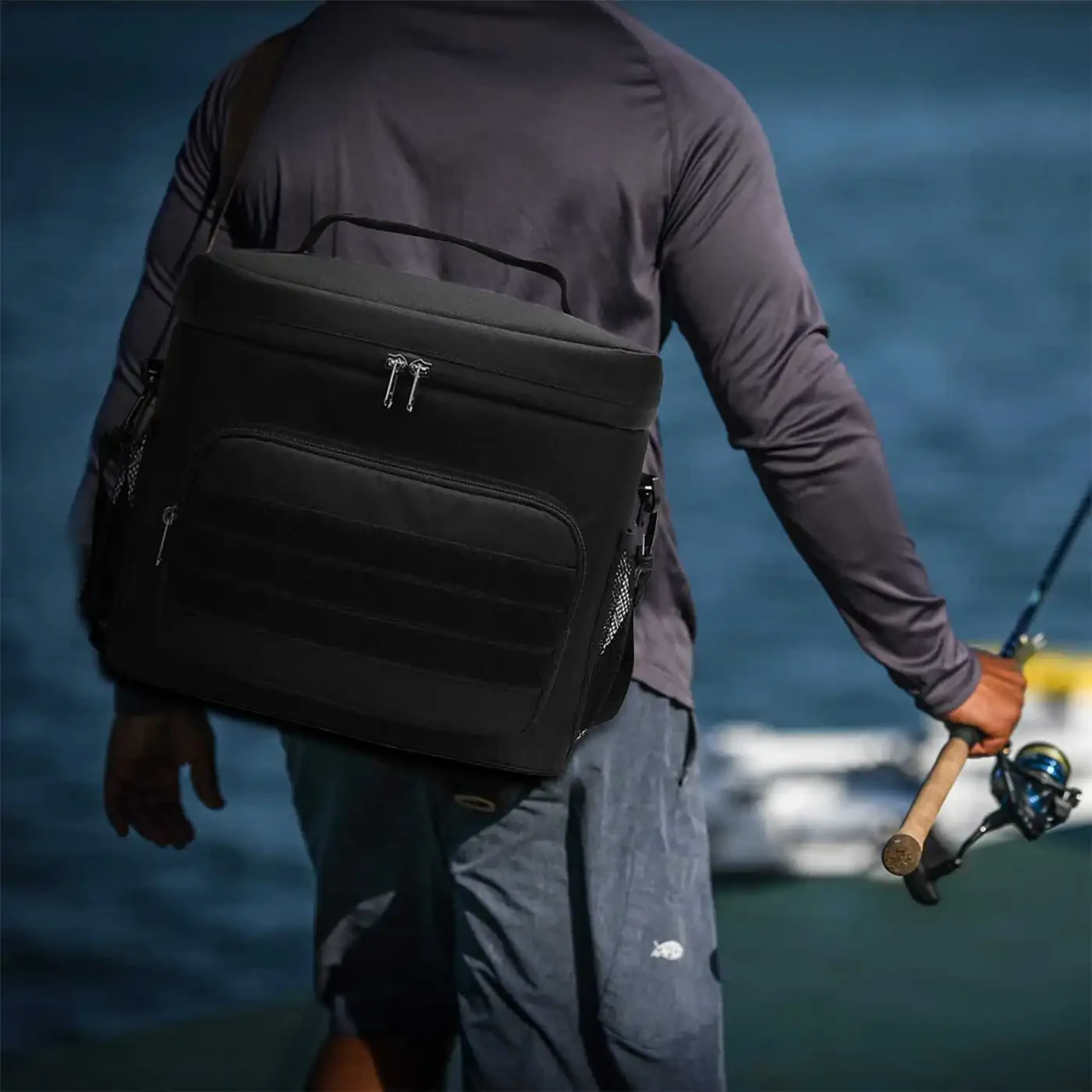 Fishing bag, tackle bag, fishing gear, fisherman bag, waterproof bag, molded base, 600D Oxford, multi-function bag, adjustable strap, black bag
