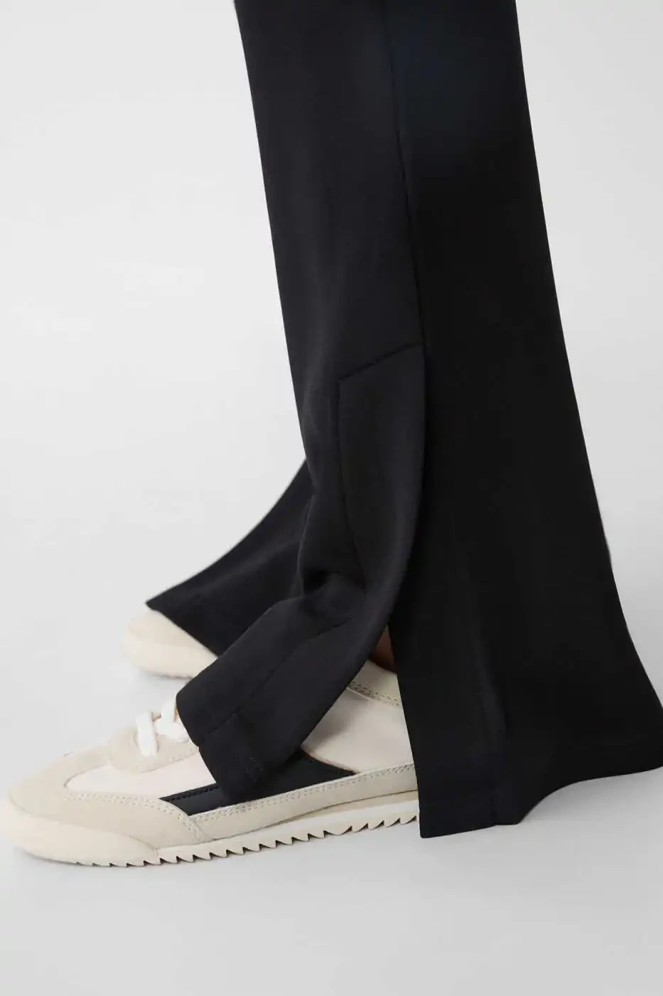 Наши брюки с мягкой и дышащей текстурой обеспечат комфорт в течение всего дня, а их тонкая структура придаст изящный вид. Крой испанского кроя делает ваши ноги длиннее и тоньше, добавляя элегантности вашему силуэту.