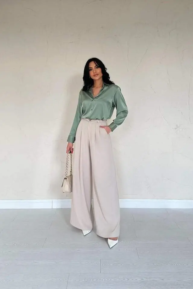 мятная атласная рубашка, атласная рубашка, мятная рубашка, женская рубашка, стильная рубашка, удобная рубашка, офисная рубашка, повседневная рубашка, современная рубашка, элегантная рубашка
