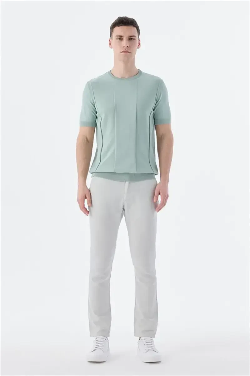 Сочетайте стиль и комфорт с трикотажной футболкой Mint Slim Fit с круглым вырезом! Изысканный мятно-зеленый цвет и идеально сидящий силуэт slim fit позволят вам чувствовать себя великолепно в любой обстановке. Изготовленная из высококачественной смеси 65% вискозы и 35% нейлона, эта трикотажная футболка выделяется своей эластичной и мягкой текстурой, обеспечивающей комфорт на весь день. Круглый вырез создает стильный и современный образ, а крой slim fit изящно подчеркивает линию тела. Эта универсальная футболка, которую можно носить как с повседневными нарядами, так и на торжественных мероприятиях, станет незаменимой частью вашего гардероба. Благодаря дышащей структуре она помогает оставаться свежим и прохладным в течение всего дня, а прочная ткань обеспечивает длительный срок службы. Благодаря высочайшему качеству и стильному дизайну трикотажная футболка Mint Slim Fit с круглым вырезом станет выбором стильных мужчин. Следуя инструкциям по уходу, вы сможете долгие годы наслаждаться этим качественным изделием. Наш манекен имеет рост 187 см, вес 78 кг и обхват груди 100 см, на нем футболка размера М. Вы также можете проверить свои размеры и выбрать наиболее подходящий для вас размер. Пожалуйста, помните, что при ручном измерении возможны отклонения на 1 см. Добавьте эту великолепную футболку в свою корзину и завершите свой образ!