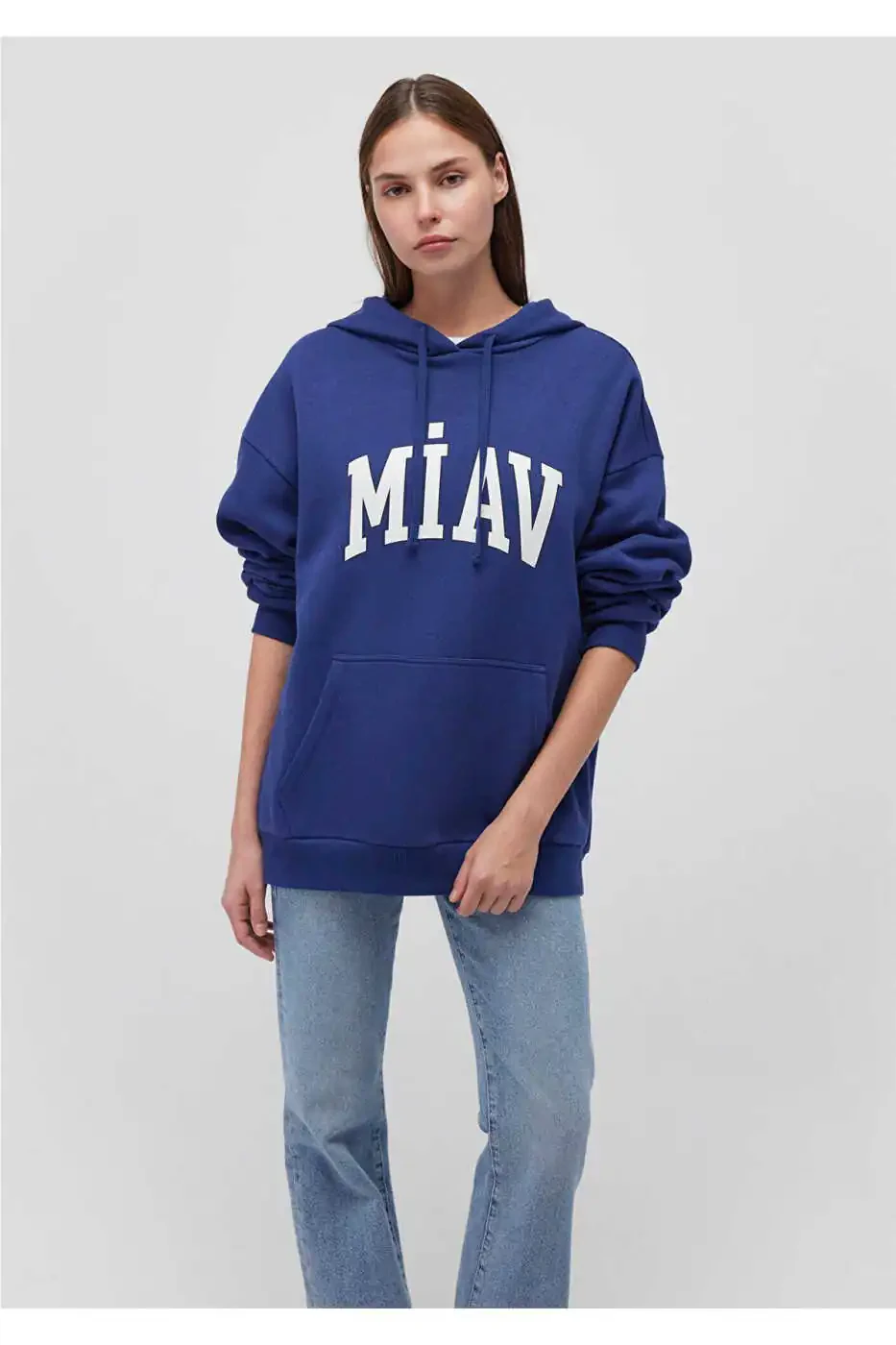 The Miav Printed Hooded Blue Sweatshirt is a perfect choice that combines comfort and style. Ideal for everyday wear, this sweatshirt offers a comfortable experience with its soft texture and relaxed fit. Its hood will keep you warm in cold weather, while the Miav print will add a modern touch to your style.