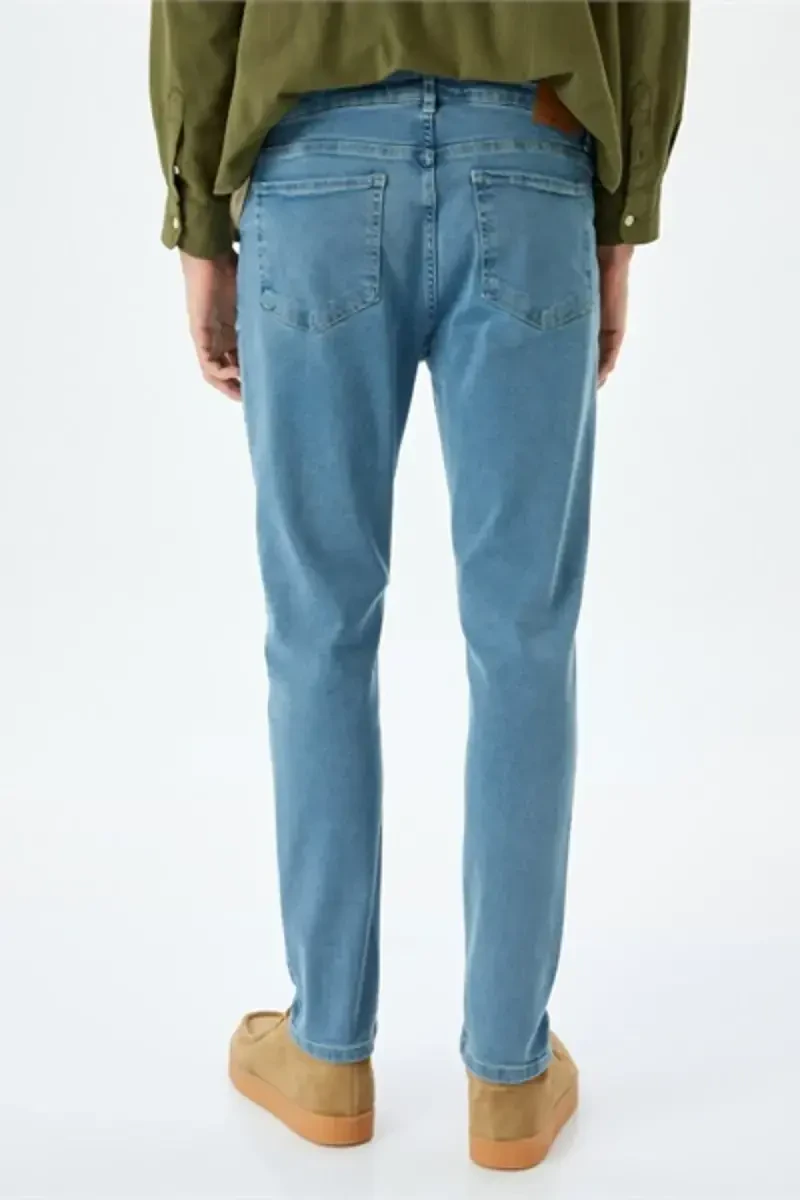 Ochiq Moviy Skinny Fit Erkak Jean - Paxtalik, Tor Pochcha