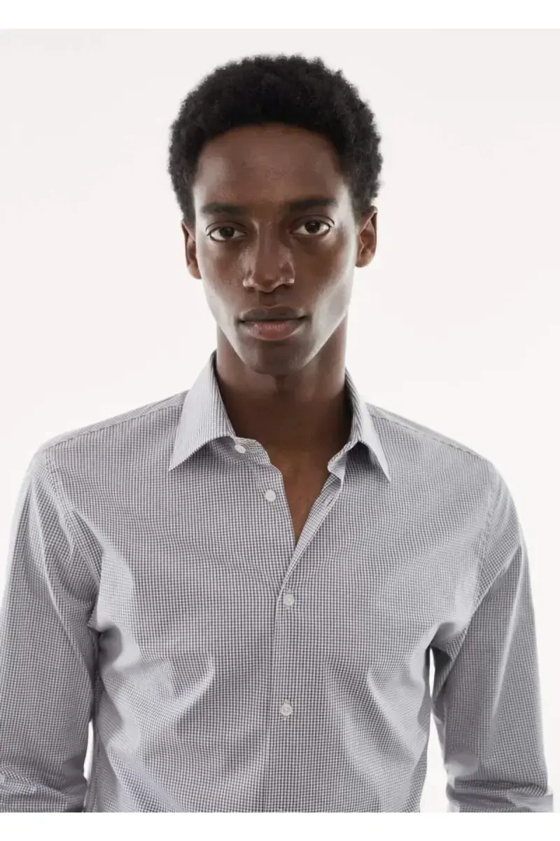 Stretch Fabric Micro Checkered Shirt - Gray combines elegance and comfort in a special design. Part of the Performance Collection, this shirt stands out with its slim fit and mini houndstooth pattern, while offering all-day comfort thanks to its cotton, polyester, and elastane blend fabric. Featuring a collared neckline and front button closure, it offers a classic look, while the long sleeves and buttoned cuffs add a modern touch. The rounded hemline adds movement to the shirt and provides compatibility with different combinations. The model is 190 cm tall and wears a size M, which shows that the product is suitable for different body types. One of the most important features of this shirt is that it is easy to iron, allowing you to always look well-groomed and stylish. Thanks to its stretch fabric, it offers maximum comfort and freedom of movement, so you feel comfortable all day long. The Performance series consists of garments made from technical fibers that ensure you look and feel great all day long, no matter what you do or where you go. This shirt stands out with its heat-regulating, functional, easy-care, and comfortable features. It is made from fabrics with various advanced features such as bi-stretch, quick-drying, easy ironing, heat regulation, breathability, and water repellency. The gray color makes the shirt versatile and easily combinable with different colors. This shirt, which you can prefer in daily use or on special occasions, will be an indispensable part of your wardrobe. In addition, this product offered with Trendyol assurance offers a fast and reliable shopping experience. Thanks to the free return option within 15 days, you can buy it with peace of mind. If you want to experience elegance and comfort together, order the Stretch Fabric Micro Checkered Shirt - Gray now and reflect your style.