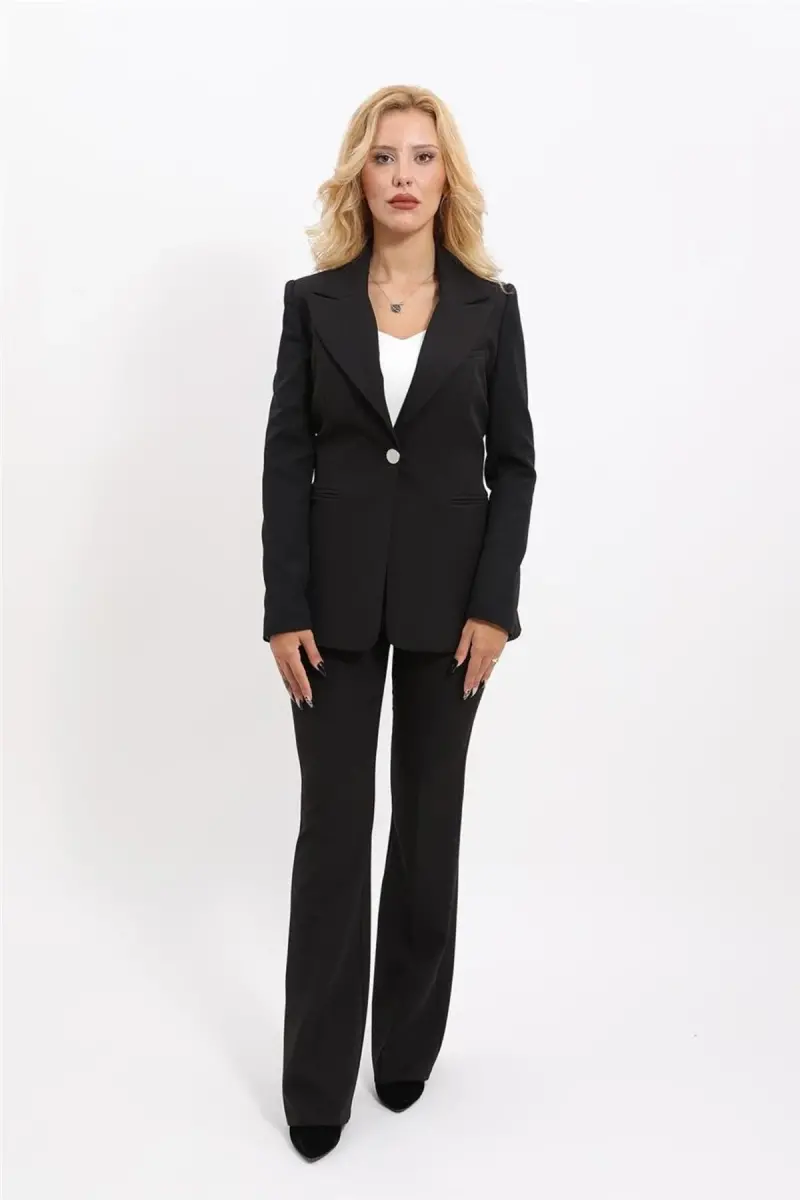 Zamansız şıklığı ve konforu bir araya getiren Midi Ceket & İspanyol Paça Pantolon Takım, gardırobunuzun vazgeçilmez parçalarından biri olacak. Zarif midi boy ceketi, şık ve modern bir görünüm sunarken, rahat ve stil sahibi İspanyol paça pantolon ile kusursuz bir uyum sağlar.
