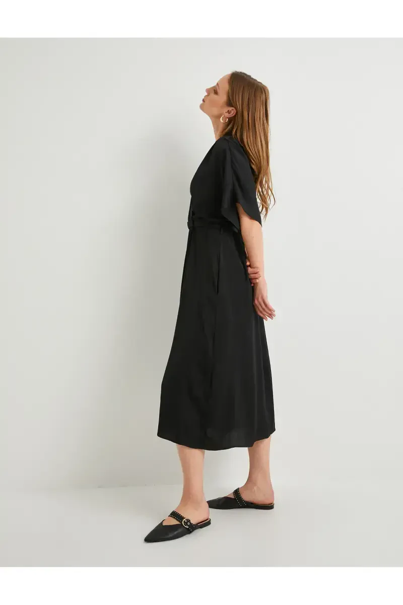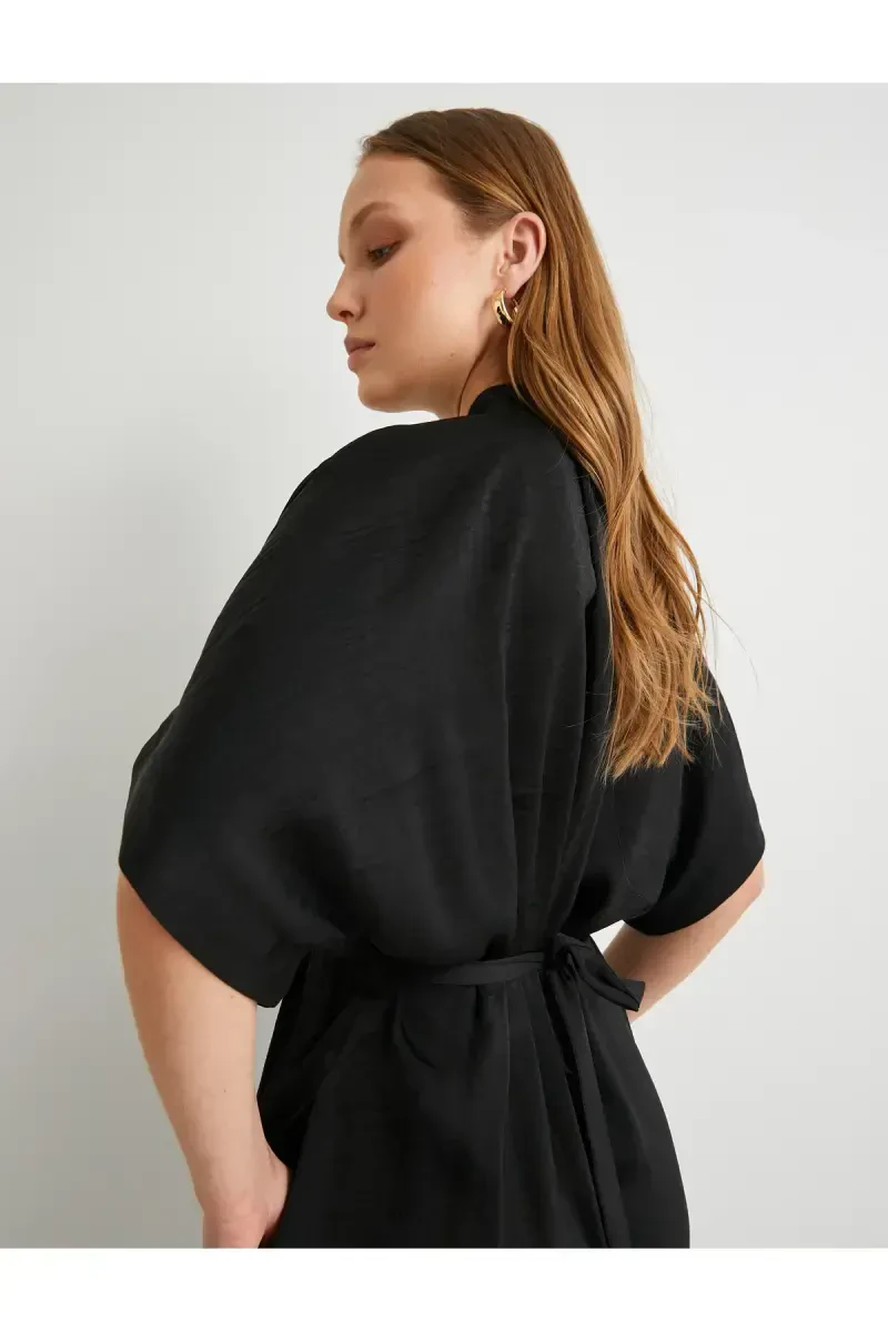 Midi bo'yli, V yoqali, kalta keng yengli, cho'ntakli, 100% paxta poplin mato.