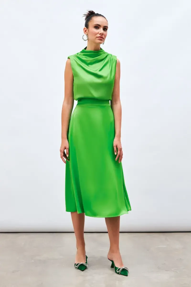 Especially preferred in the summer months, the light green color offers a more vivid and eye-catching look in sunlight. The Midi Skirt, which you can easily use in both evening and daytime combinations, aims to make you look stylish and elegant at all times.