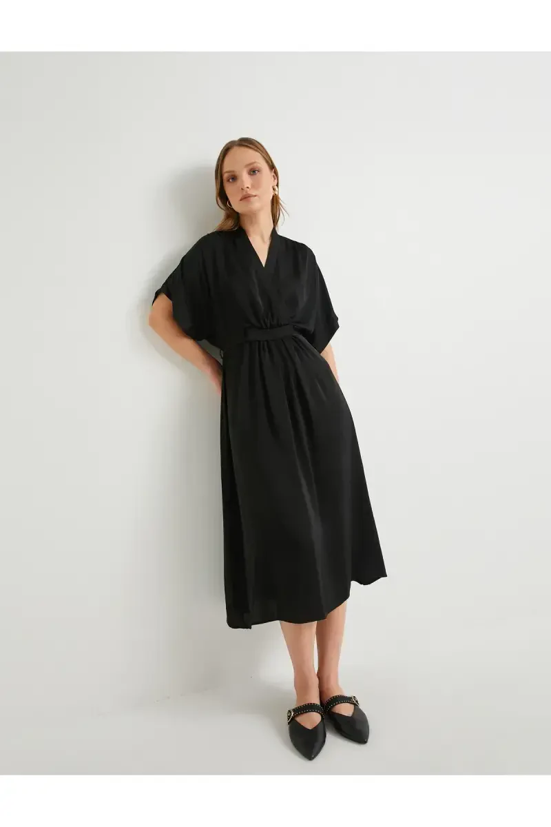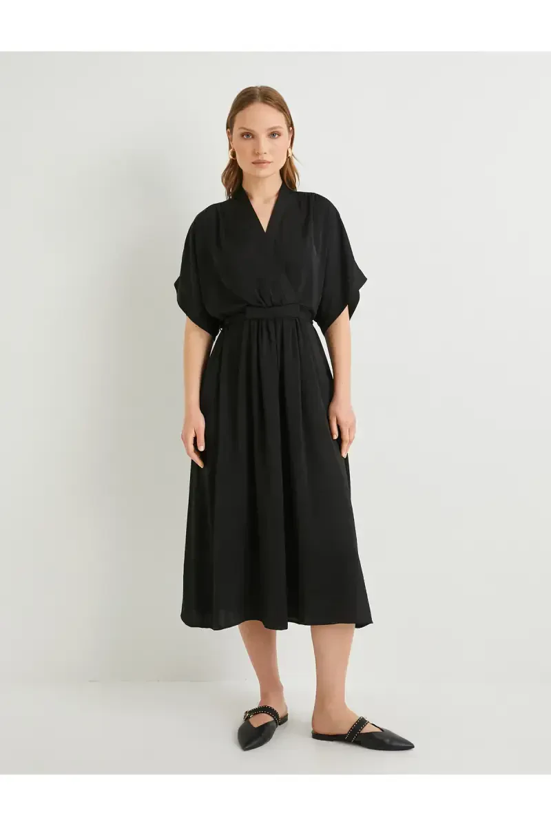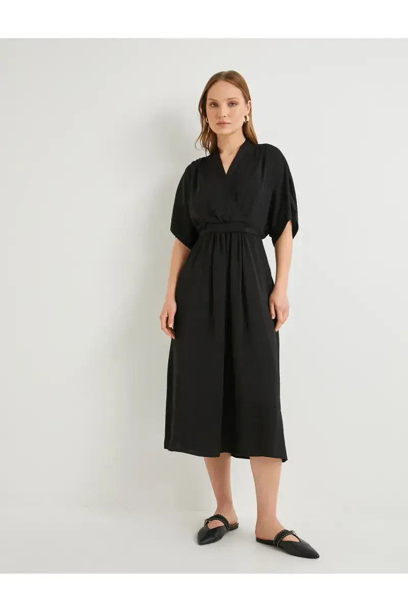 миди платье, платье с V-образным вырезом, платье с короткими рукавами, платье с карманами, платье из хлопкового поплина, платье из поплина, летнее платье, повседневное платье, удобное платье, женское платье