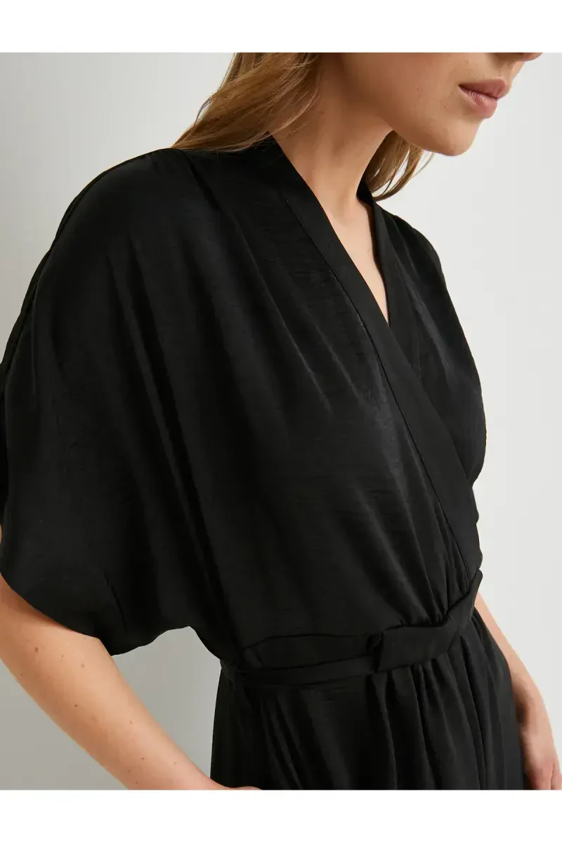 Миди, V-образный вырез, короткий широкий рукав, с карманами, 100% хлопок, поплин.