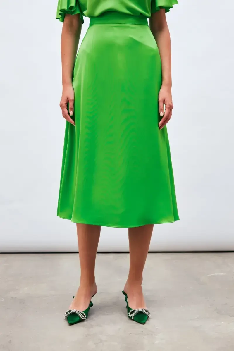 Nafis va zamonaviy ko'rinish uchun ajoyib tanlov bo'lgan Midi Uzunlikdagi Atlas Yubka, garderobingizning ajralmas qismlaridan biri bo'ladi. Ochiq yashil rangi bilan har qanday uslubga mos keladigan yubka, maxsus kunlarda yoki kundalik kombinatsiyalaringizda zamonaviyligingizni to'ldirish uchun ideal tanlovdir.