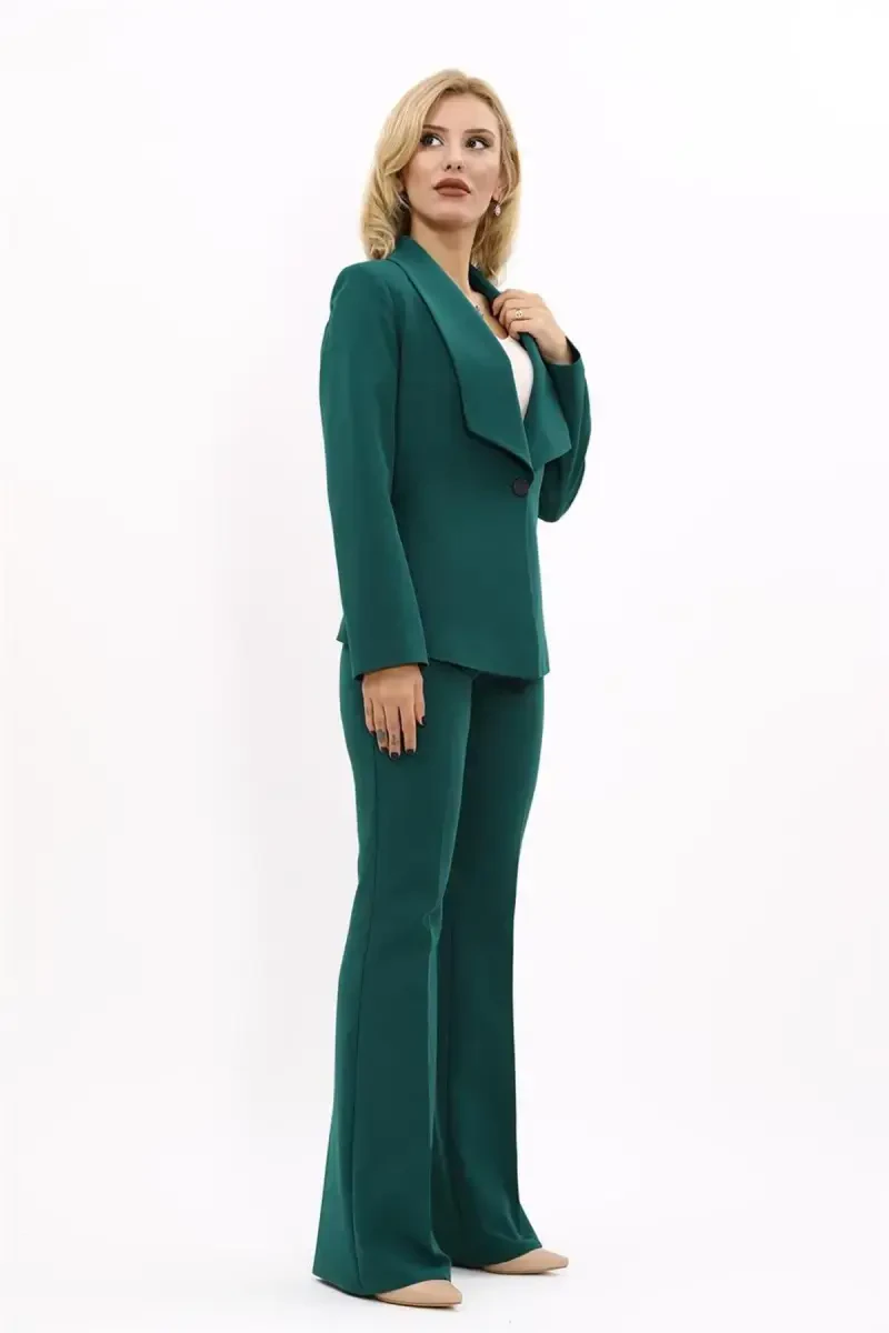 Миди Жакет & Брюки Клеш - Изумрудно-зеленый