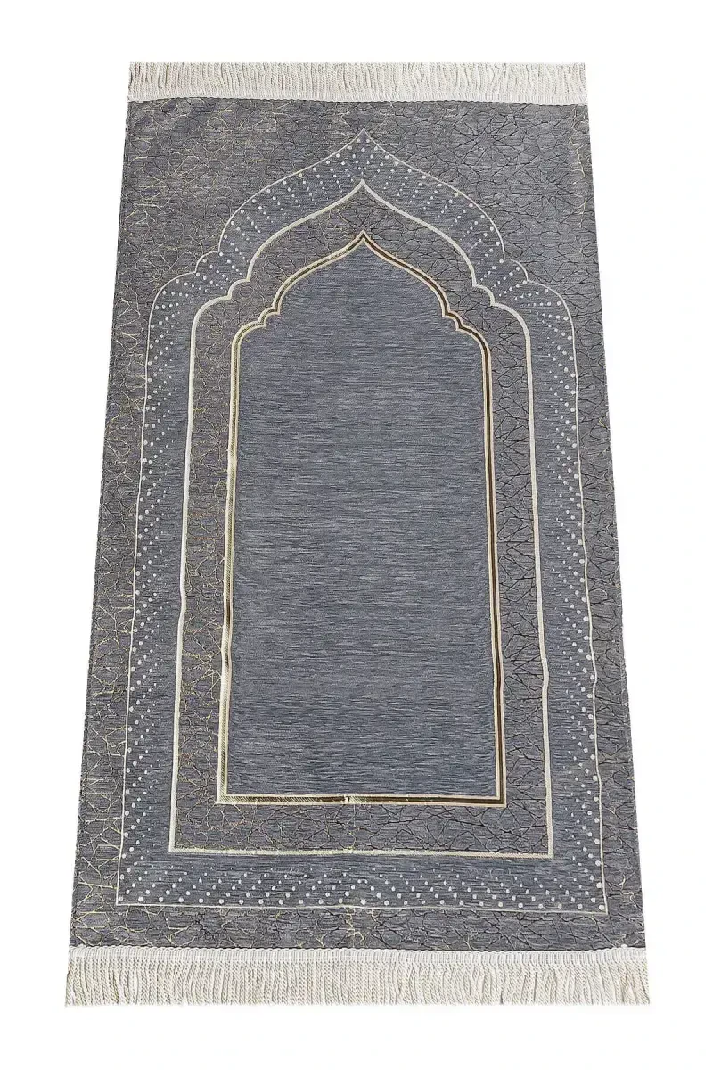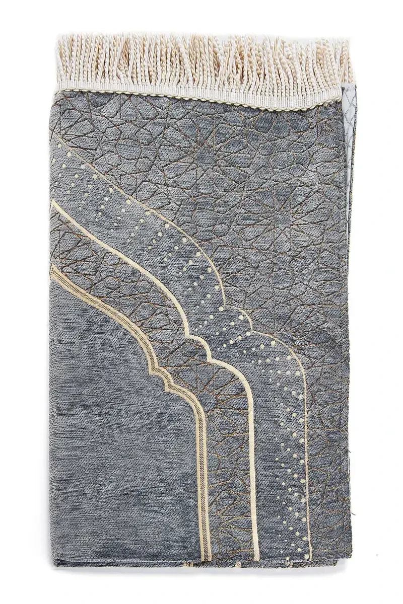Mihrap Desenli Şönil Seccade Gri | Astarlı, Yumuşak ve Şık