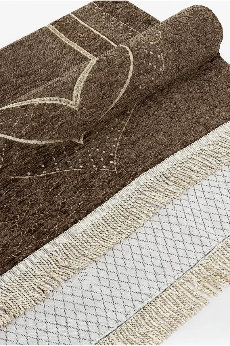 Make your worship more special and meaningful with the Mihrab Patterned Lined Chenille Prayer Rug. Designed with the warmth of brown tones and the spiritual depth of the mihrab pattern, this prayer rug is an ideal choice for both daily use and special occasions. The unique texture and softness of the chenille fabric provide comfort during prayer, while its lining minimizes discomfort from the floor. This 70 cm x 110 cm prayer rug, with its ideal size, can be easily carried and stored anywhere. Thanks to its special texture that does not shed or pill, it offers long-lasting use. The patterns on it are not printed, but completely woven with chenille yarns, which increases the quality and durability of the prayer rug. Thanks to its thin structure, you can carry it with you on your travels, visits, or wherever you want. It is a meaningful option that you can gift to your loved ones during baby showers, hajj, and umrah visits. The Mihrab Patterned Lined Chenille Prayer Rug is not just a prayer rug, but also a symbol of a spiritual journey. It helps you perform your worship in a more peaceful environment by providing a clean and smooth surface. It makes it easier for you to focus on your prayer by increasing your spiritual feeling. It strengthens your devotion to Allah by encouraging discipline and respect. Thanks to the comfort of the chenille fabric, it prevents irritation of your knees and skin. Offered with the assurance of İhvan Online, this prayer rug brings quality and elegance together. Remember, you can order a maximum of 20 of this product. Different limits may be set for corporate orders. With the possibility of free return within 15 days, you can buy with peace of mind.