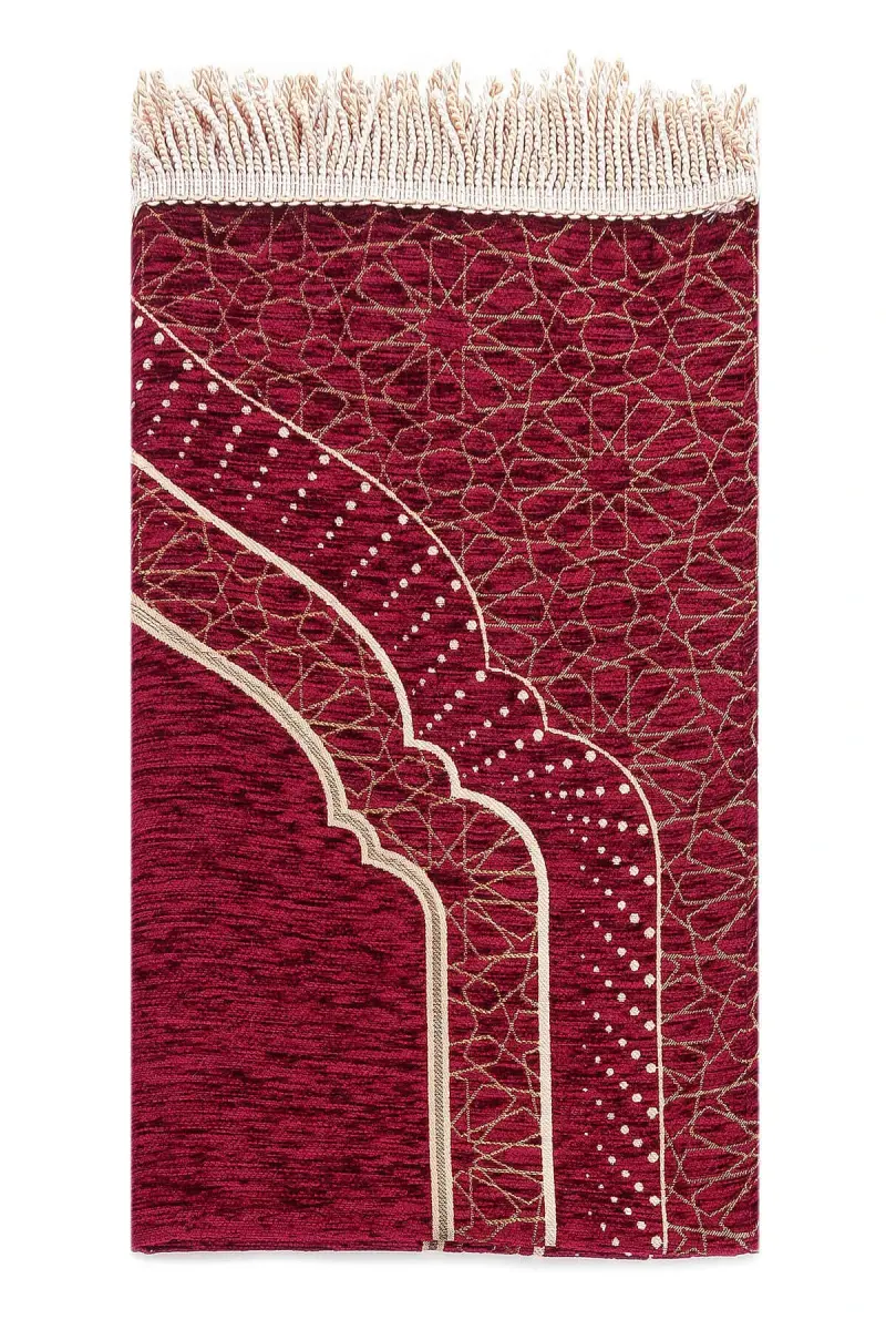 The Burgundy Niche Patterned Chenille Prayer Rug, designed to help you perform your prayers in peace, stands out with its aesthetic appearance and comfortable structure. Combining the nobility of burgundy color with a niche pattern, this special prayer rug offers unparalleled comfort while praying thanks to the soft texture of the chenille fabric. Made of high-quality material, the prayer rug offers long-lasting use, while its lined structure cuts off the cold from the ground, making your prayers more enjoyable. This prayer rug, with every detail carefully considered, combines traditional motifs with a modern interpretation, appealing to your eye and enriching your spiritual atmosphere. The special texture of chenille fabric gives the prayer rug a soft and velvety feel while increasing its durability. Its lined structure makes the prayer rug thicker and fuller, providing extra support for your knees and joints.The Burgundy Niche Patterned Chenille Prayer Rug can be considered not only for performing your prayers but also as a decorative element that will add elegance to your home. This prayer rug, which you can consider as a special gift alternative for your guests, is one of the most beautiful ways to add spiritual value to your loved ones. Whether you choose it for yourself or your loved ones, you can perform your prayers more meaningfully and peacefully with this prayer rug.The burgundy color of the product adds warmth and depth to the environment, helping you to focus while performing your prayers. The niche pattern makes it easier to face the Qibla while bringing the elegance of Islamic art to your home. The light and portable nature of the prayer rug allows you to easily perform your prayers on your travels or in different places. It takes up little space when folded, offering easy storage.The Burgundy Niche Patterned Chenille Prayer Rug is a special product that reflects your spiritual value, which you can use for many years with its quality workmanship and careful design. You can choose this prayer rug to make your prayers more meaningful and add an aesthetic touch to your home.