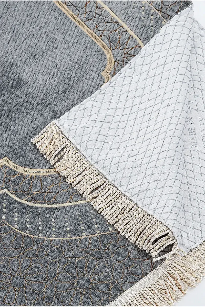 Mihrap Desenli Şönil Seccade Gri | Astarlı, Yumuşak ve Şık