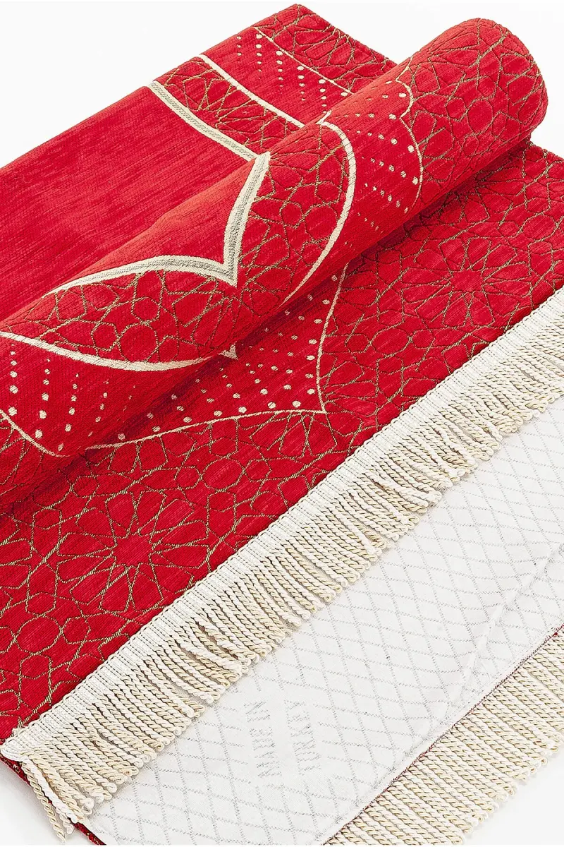 Mihrap Patterned Red Prayer Rug | Chenille, Lined, Comfortable Prayer Rug