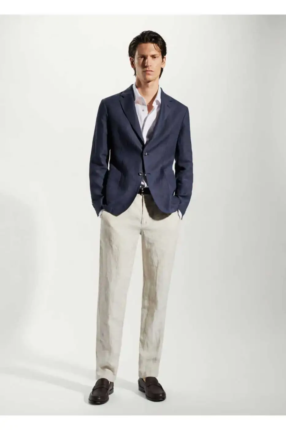 Mikro İspanyol Paça %100 Keten Blazer Ceket