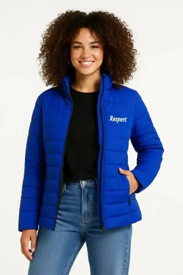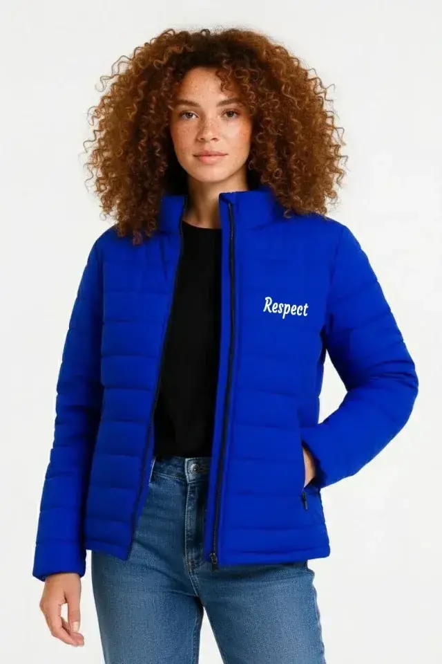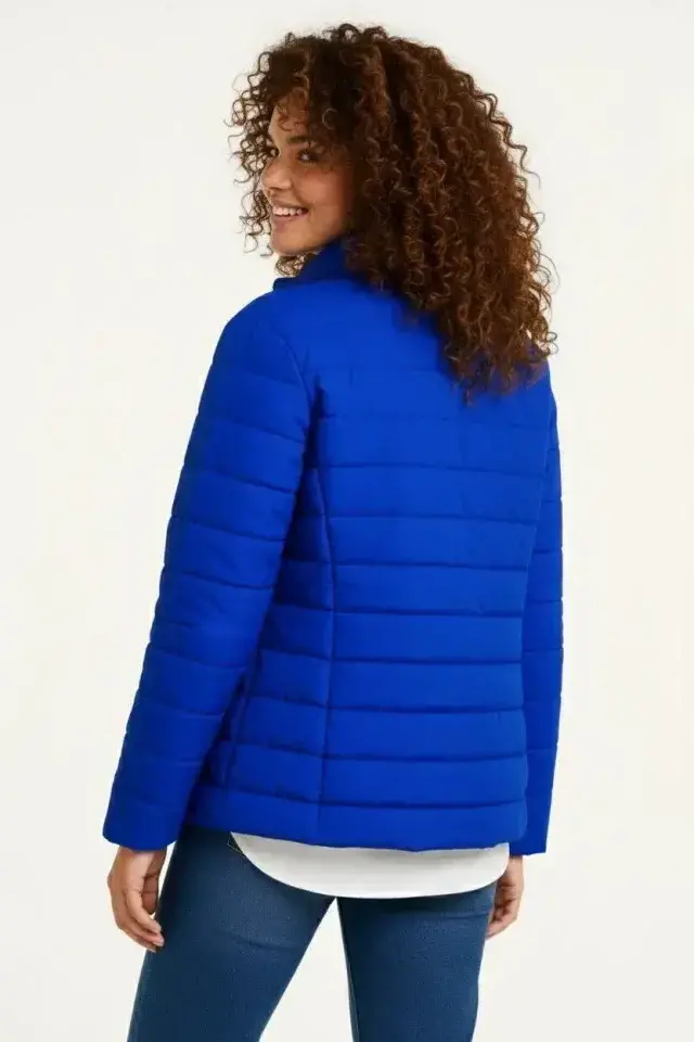 Mikro Su İtici Kapitone Baskılı Astarlı Fermuarlı Bomber Mont - Saks Mavisi