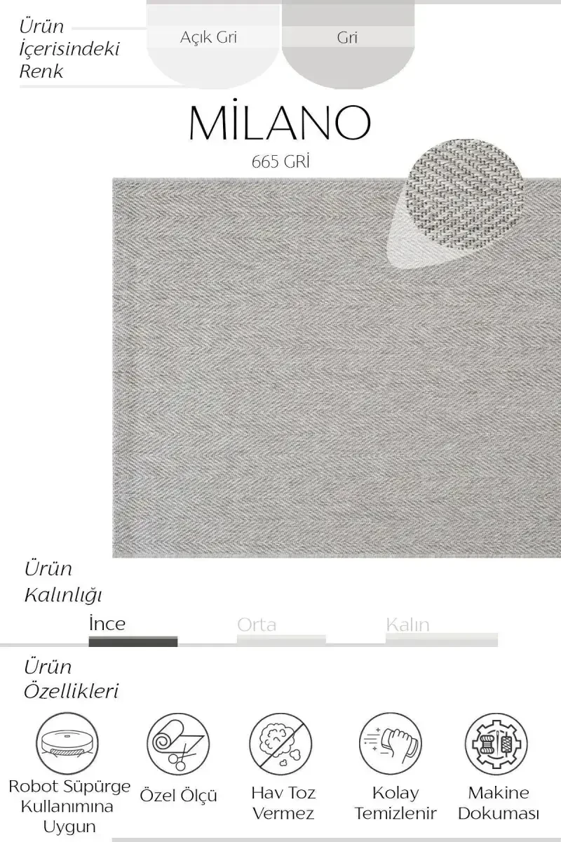 Milano 665 Kulrang somon to'qimali gilam-gilam, oson tozalanadigan xususiyati tufayli kundalik foydalanishda katta qulaylik yaratadi. Tuk chang bermaydi, bu esa allergiyasi bor odamlar uchun ideal tanlovdir. Gilam tozalash xizmatlarida bemalol yuvdirishingiz mumkin. To'qilgan taglik tufayli u erga mahkam o'rnashadi va sirpanmaydi. Maxsus o'lcham variantlari tufayli siz o'zingizga mos o'lchamlarda buyurtma berishingiz mumkin. Dala hovli, oshxona, yo'lak, mehmonxona, bolalar xonasi va yotoqxona kabi turli xil foydalanish joylariga mos keladi. Kulrang rangi har qanday dekoratsiya uslubi bilan osonlikcha uyg'unlashadi.