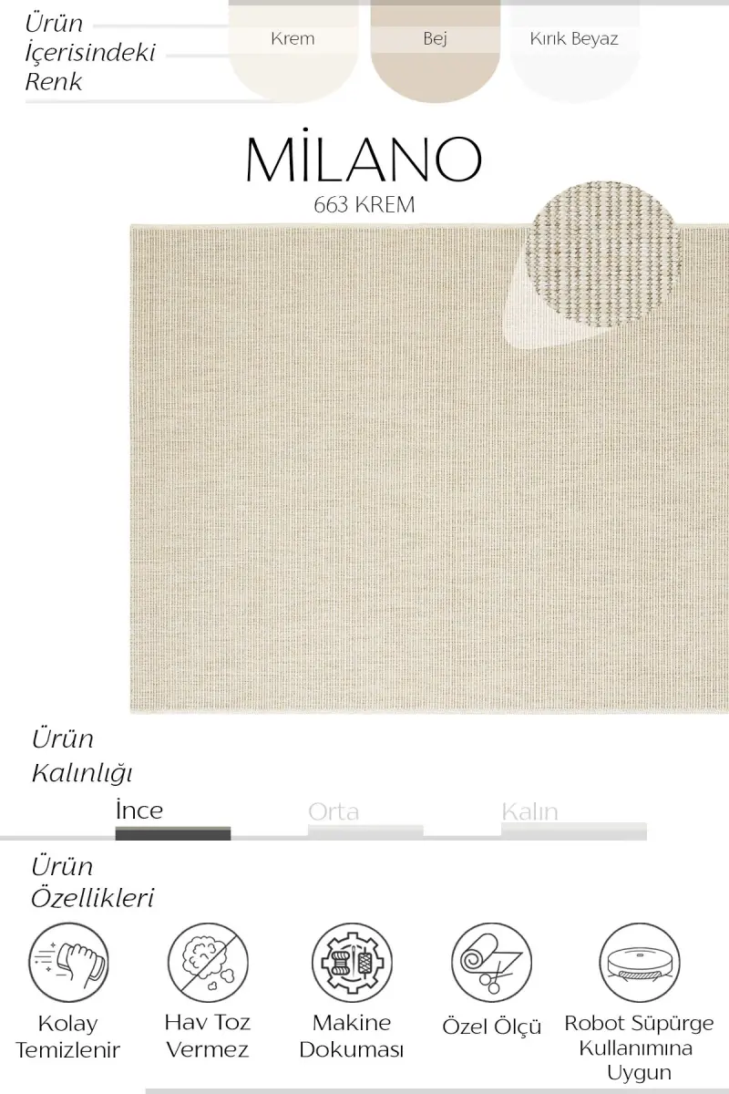 Milano Krem Bej Hasır Bohem Leke Tutmaz Kesme Düz Renk Rustik Balkon Ev Mutfak Oturma Odası Halısı-Krem 55