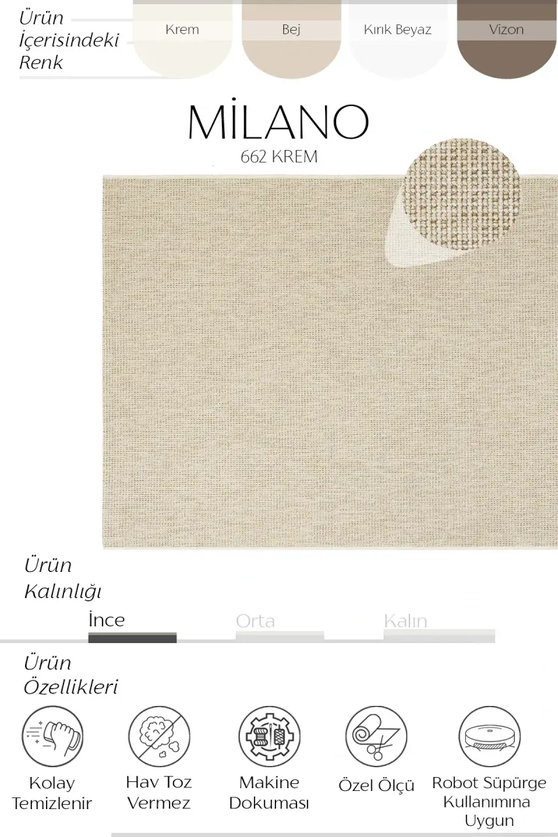 Milano Krem Bej Rengi Jüt Hasır Görünümlü Modern Bohem Kolay Temizlenebilir Salon Oda Balkon Halısı-Krem 44