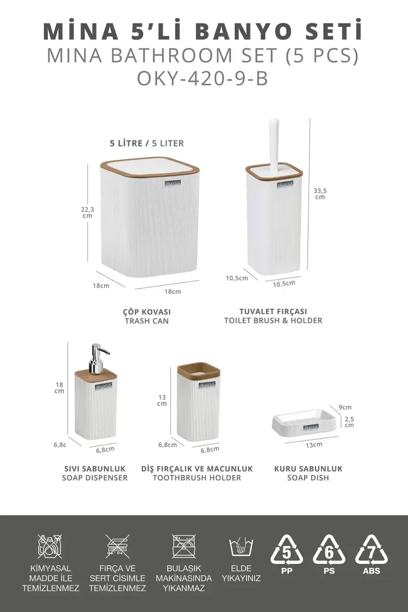 Набор для ванной комнаты Mina Due White Striped Square из 5 предметов, разработанный для того, чтобы придать вашей ванной комнате стильный и современный вид, предлагает все, что вам нужно в вашей ванной комнате, благодаря своему элегантному дизайну и полезным компонентам. Этот набор, предлагаемый вам под гарантией Ocean Home, добавит вашей ванной комнате свежий и чистый вид благодаря белому квадратному рисунку в полоску. Изготовленный из прочных и качественных материалов, комплект сохранит свою элегантность в течение многих лет. Идеальный выбор для тех, кто ищет как элегантность, так и функциональность, 5-предметный набор для ванной комнаты Mina Due White Striped Square полностью изменит атмосферу вашей ванной комнаты. Каждый предмет в комплекте тщательно разработан для обеспечения порядка и эстетики в вашей ванной комнате. Этот набор, включающий в себя основные аксессуары для ванной комнаты, такие как дозатор для жидкого мыла, держатель для зубных щеток, мыльница, мусорное ведро и туалетный ершик, предлагает все, что вам может понадобиться в вашей ванной комнате. Продукт в элегантной коробке - отличный вариант для подарка вашим близким. Воспользуйтесь этим предложением по выгодной цене в рамках акции и наличием более 100 штук! Вы можете выбрать наиболее подходящий для вас вариант этого продукта, который также предлагается разными продавцами на Trendyol, сравнив рейтинги продавцов, сроки доставки и стоимость доставки.