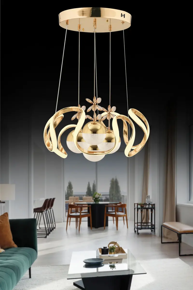 Mina Kumandalı Gold Ledli 3 Renk Modern Led Avize-Altın