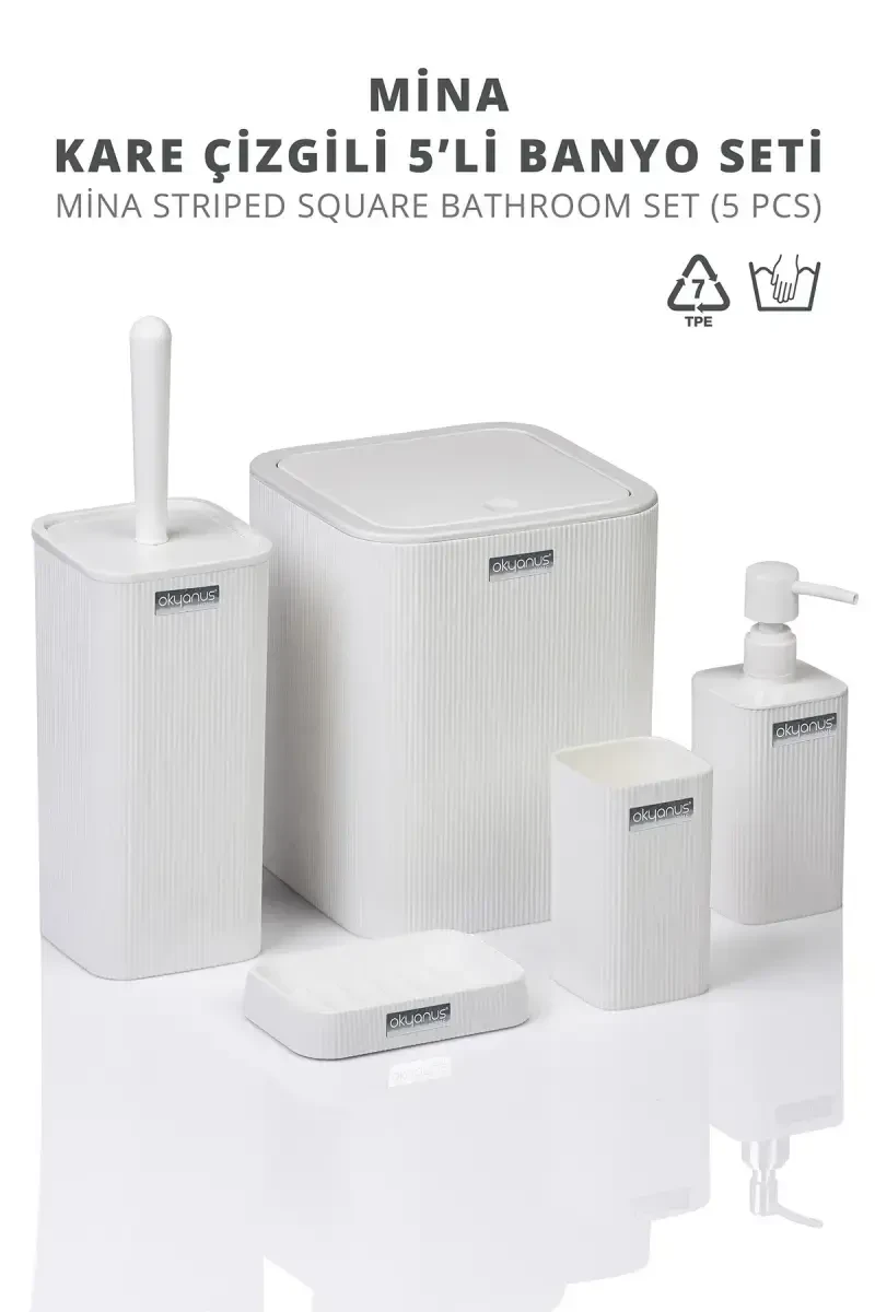 Designed to give your bathroom a modern and stylish look, the Mina White Striped Square Bathroom Set combines durability and aesthetics. Offered with the assurance of Ocean Home, this bathroom set is an ideal choice for those seeking both elegance and practicality. Hurry up to take advantage of the campaign price and add freshness to your bathroom! We have more than 100 products in stock. With a special price determined by the seller, the Mina White Striped Square Bathroom Set will make a difference in your bathroom. The delicately crafted striped pattern on a white background adds a spacious and bright atmosphere to your bathroom, while the square design offers a modern look. Made of durable plastic material, this bathroom set provides long-lasting use as well as a hygienic use with its easy-to-clean structure. With its elegance and practicality that will match your bathroom decor, the Mina White Striped Square Bathroom Set will turn your daily bathroom routine into a pleasant experience.The product may be offered for sale by more than one seller. During the purchase process, you can choose the most suitable seller for you by paying attention to seller scores, delivery statuses, promotions, cargo fees, and fast delivery options. You can order a maximum of 10 of this product. Trendyol reserves the right to cancel orders over 10. Different limits may be set for corporate orders. You also have the right to return for free within 15 days. You can visit the relevant page for detailed return conditions.