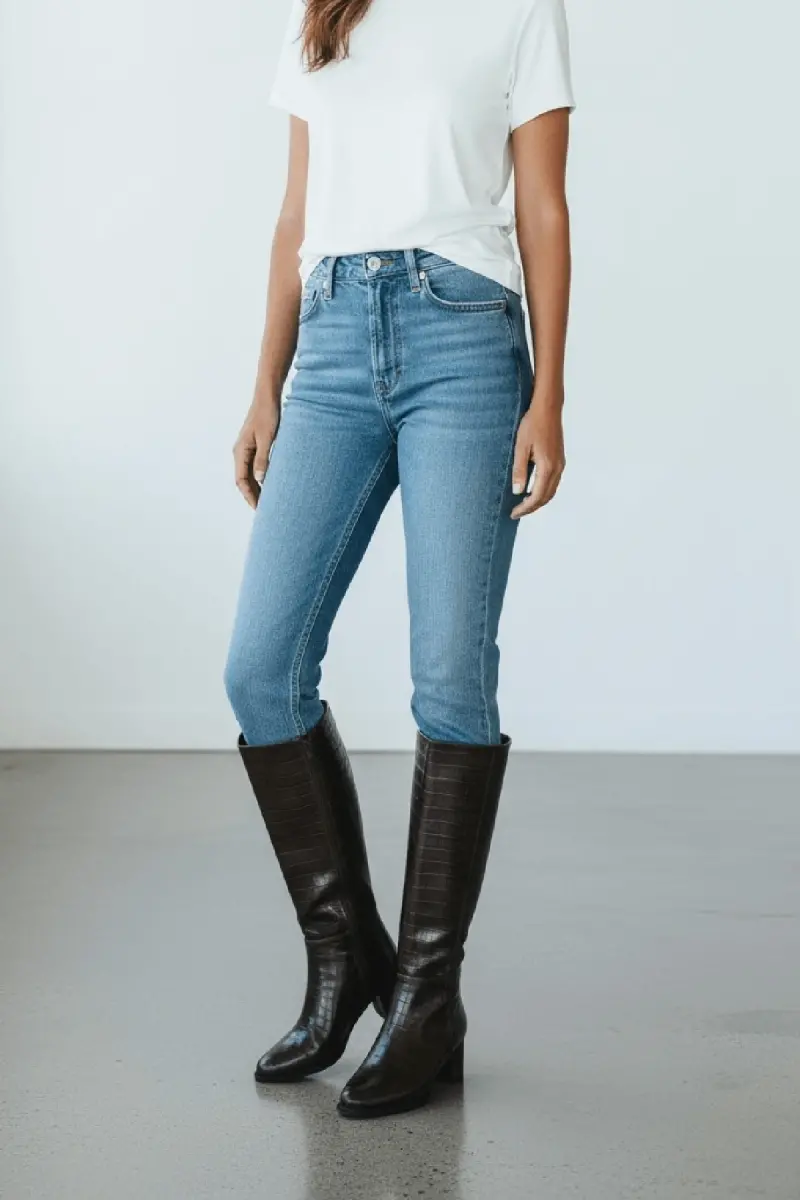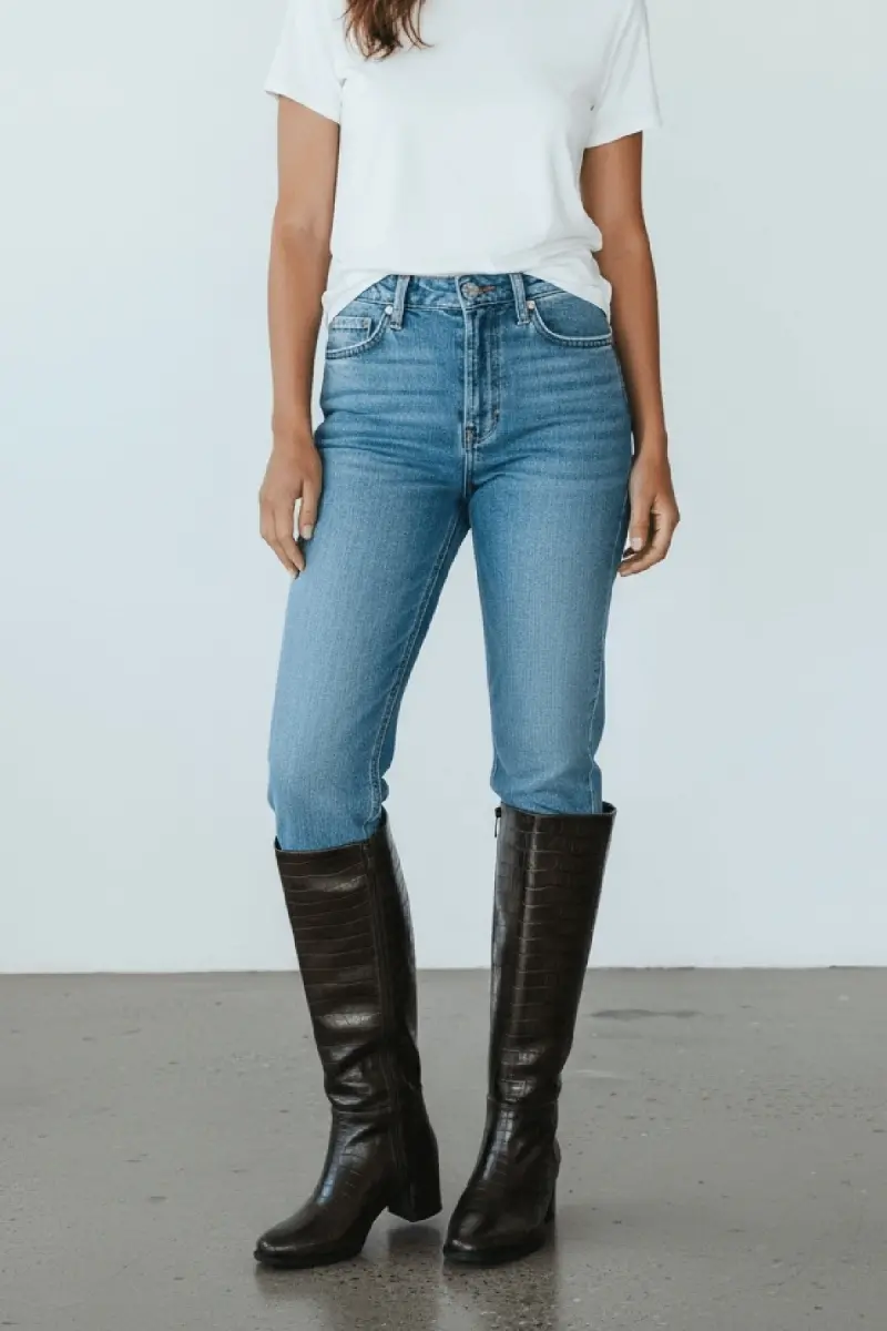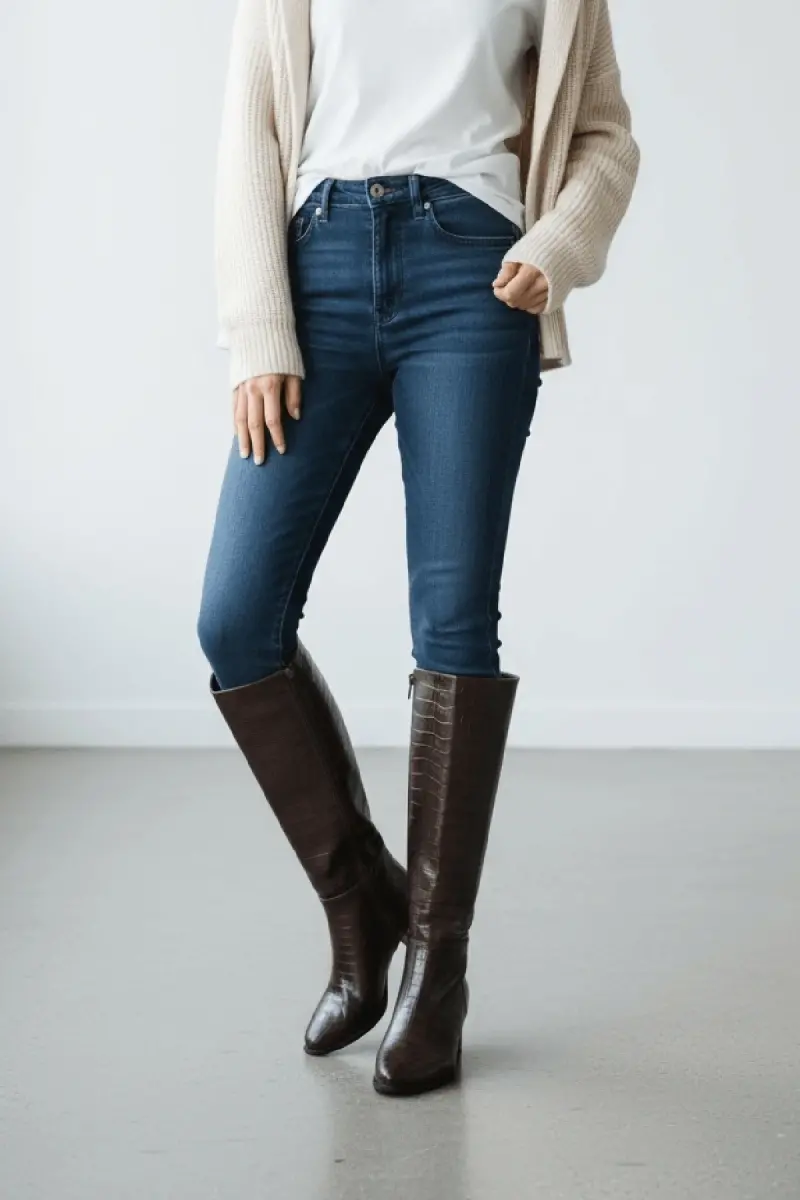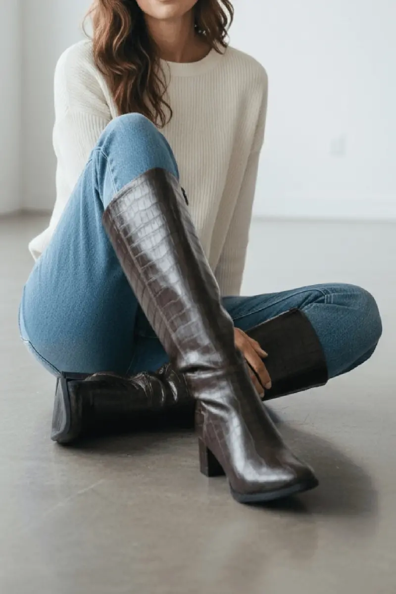 Mindy Kahverengi Kroko Deri Topuklu (5 cm. Topuklu ) Yanı Fermuarlı Günlük Kullanım Çizme-Kahve Kroko