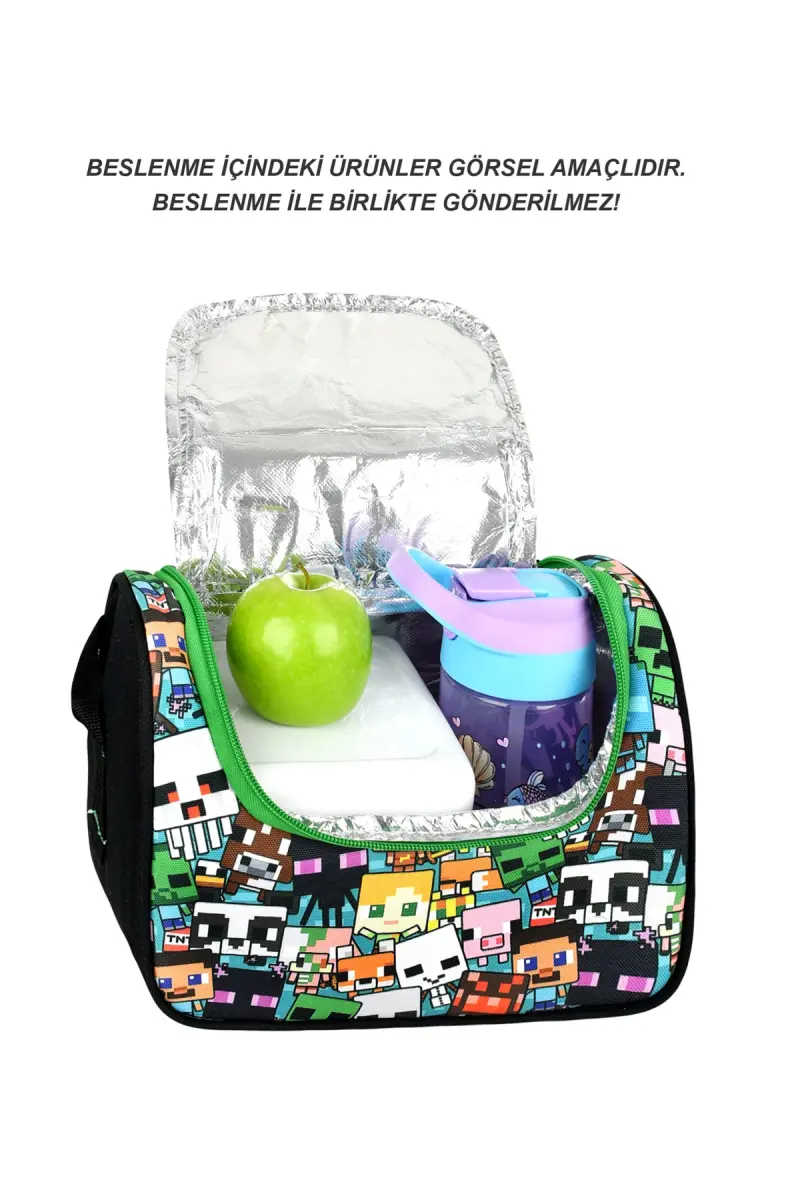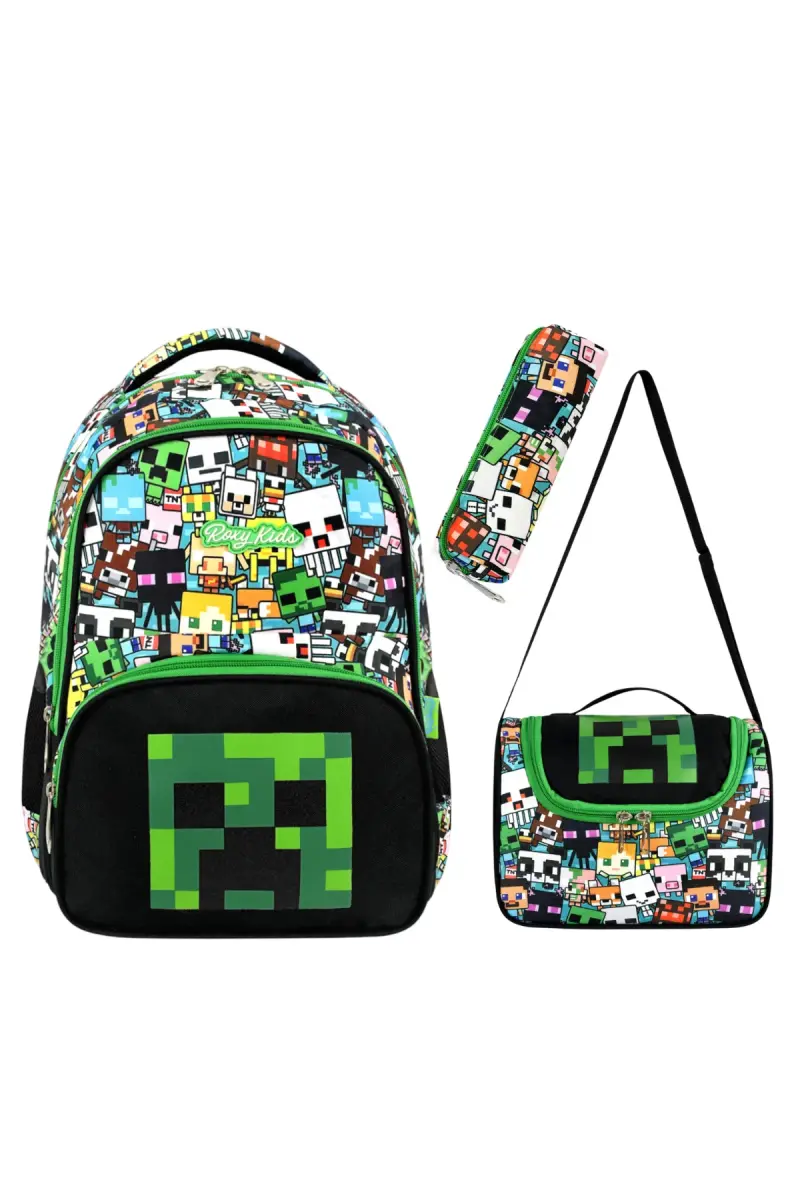 Mine Creeper 3'lü Set Ilkokul Çantası, Termal Beslenme Çantası Ve Kalem Kutusu Seti-Çok Renkli