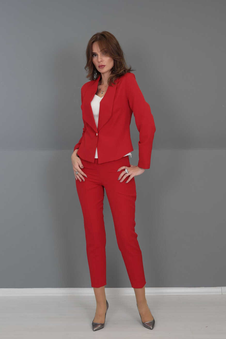 Mini Ceket & Boru Paça Pantolon Takım - Kırmızı - Şık ve Modern Günlük Stil
