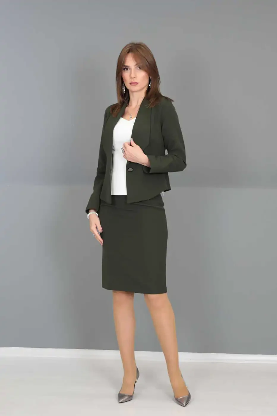 Мини-жакет & Юбка-карандаш - Хаки | Элегантный и стильный образ