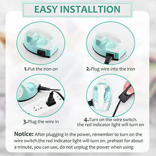 Mini Craft Iron Mini Heat Press, Portable Handy Heat Press, Small Iron with Charging Base Accessories for Fuse Beads Patch DIY Shoes T-shirts Heat Transfer Vinyl Projects(Mint Green)