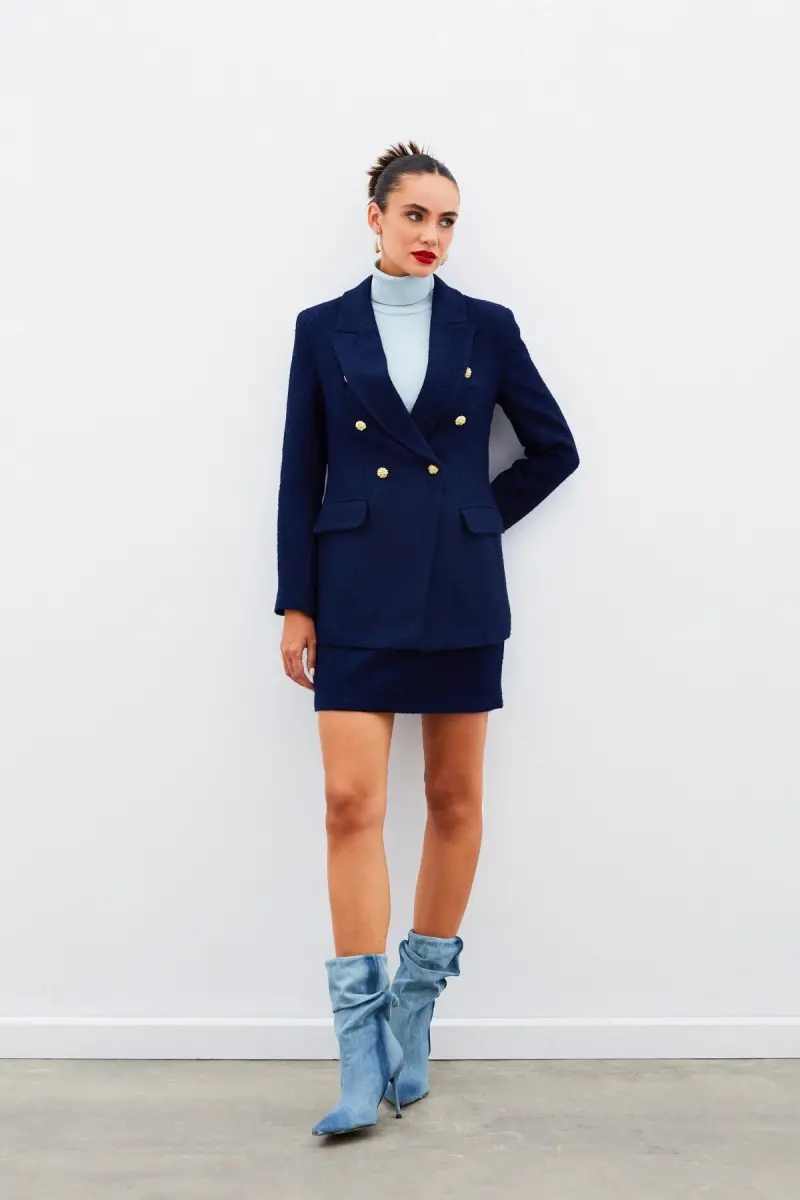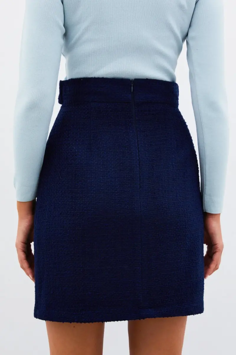 Мини-твидовая юбка: стильный темно-синий, высокое качество | Модели твидовых юбок