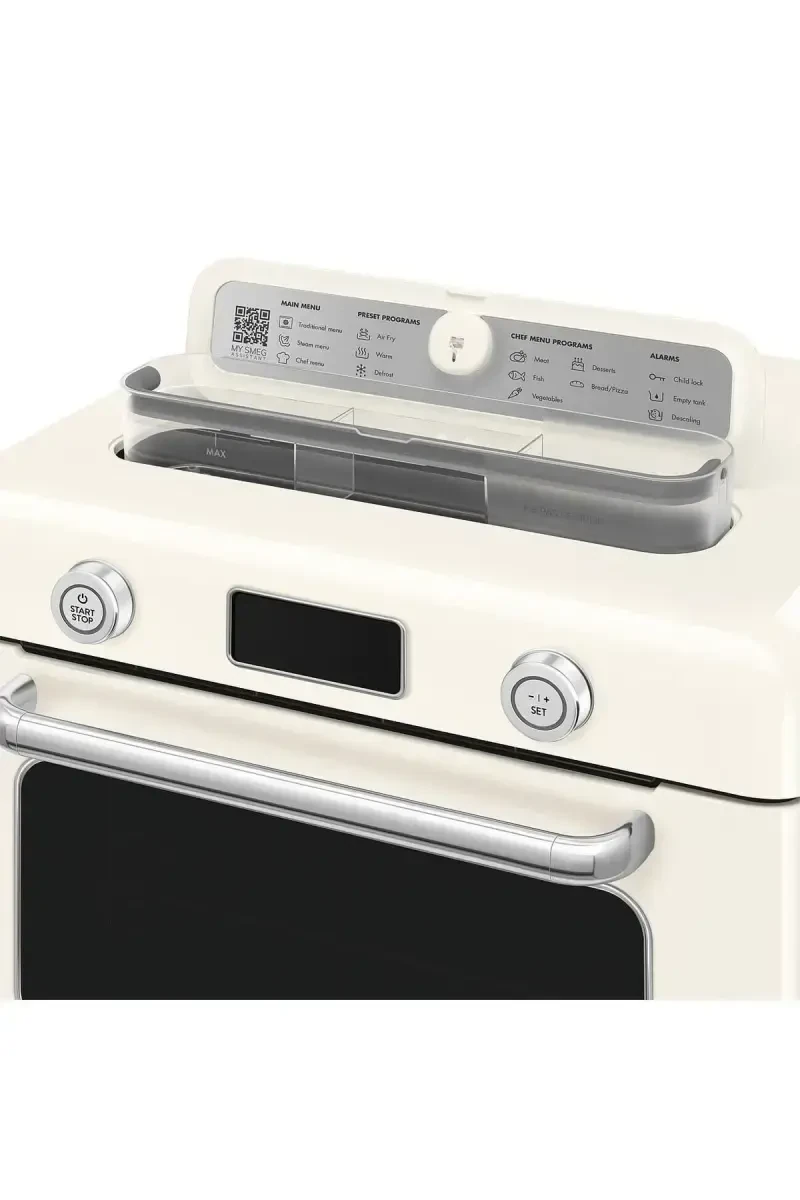 Добавляя ностальгический штрих в стиле 50-х годов в вашу кухню, мини-печь COF01 предлагает идеальное решение для небольших кухонь благодаря своим компактным размерам. Благодаря технологии паровой обработки она позволяет готовить здоровую и вкусную еду, сохраняя естественный вкус и влажность ваших блюд.