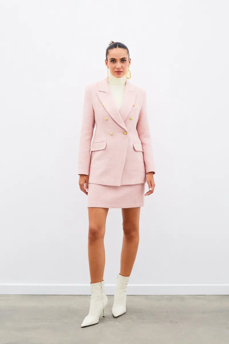 Meet the stylish and elegant mini tweed skirt that is a candidate to be the most loved piece of your wardrobe! This pink-toned skirt combines modern and classic style, allowing you to stand out in any environment. It offers long-lasting use with its high-quality material and careful workmanship, while always making you look stylish. This skirt, which you can use in your daily combinations or at special occasions, provides you with endless combination possibilities by easily matching with different top options. You can attend a special occasion with a stylish blouse and high heels, or you can achieve a more comfortable look with a basic t-shirt and sneakers. The vibrancy of the pink color and the texture of the tweed fabric add a unique atmosphere to the skirt, while the mini cut emphasizes your femininity. Button details add an elegant touch to the skirt and complete its design. Thanks to its lined structure, it offers comfortable use throughout the day. This skirt is an ideal choice for women who prioritize not only style but also comfort. It allows you to move comfortably all day long with its light and breathable structure. Feel stylish and confident at all times with this skirt that will be an indispensable part of your wardrobe! Add this unique mini tweed skirt to your cart now and bring a new breath to your style! Make a difference in any environment with the energy of the pink color and the elegance of the tweed fabric. This skirt, which will accompany you in both daily use and special moments, will be one of the most valuable pieces of your wardrobe. Remember, the best way to reflect your style is to choose pieces that you feel good and original in. You will both look stylish and feel good with this skirt! It is a perfect option for anyone who wants to make a fashionable, quality and stylish choice.