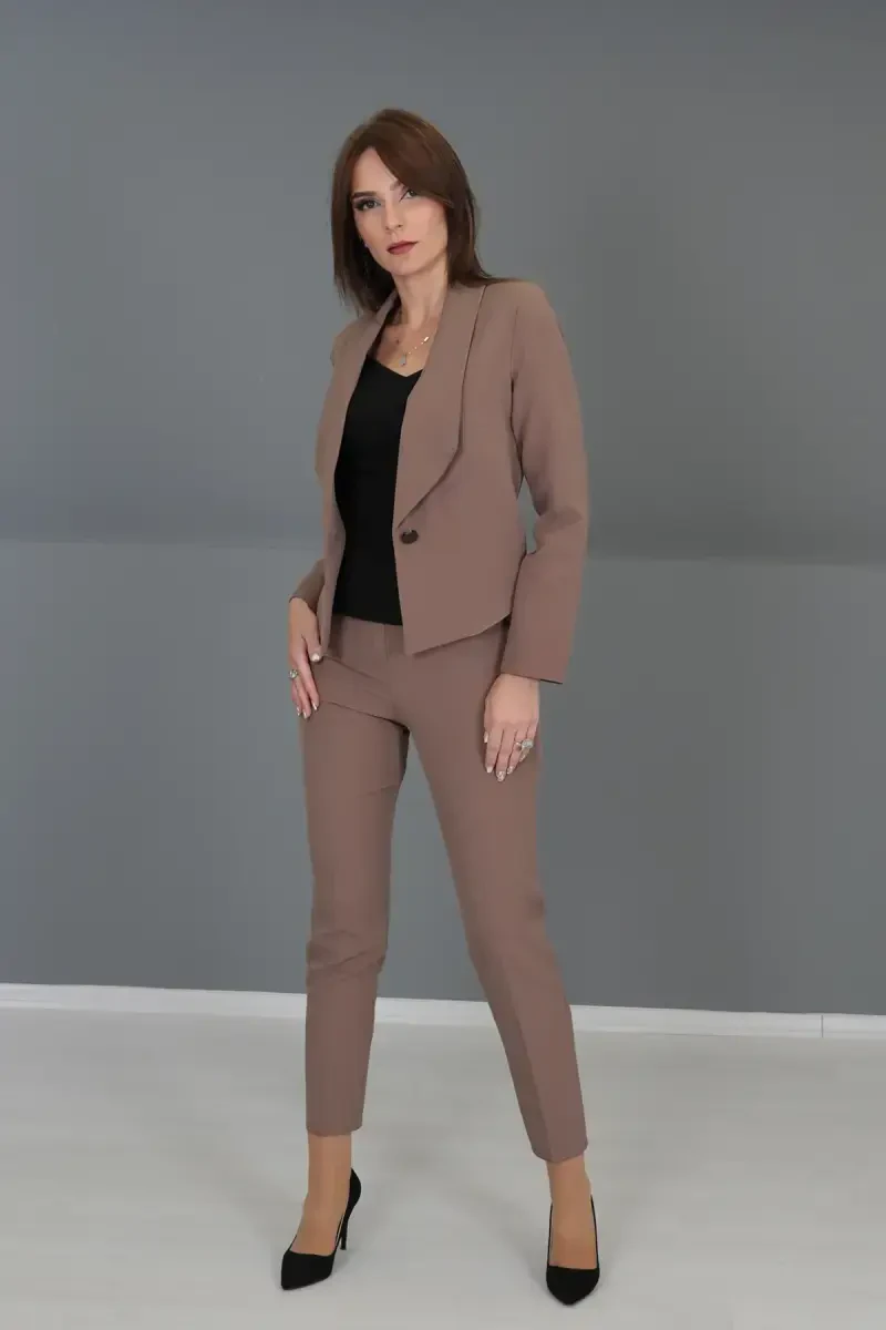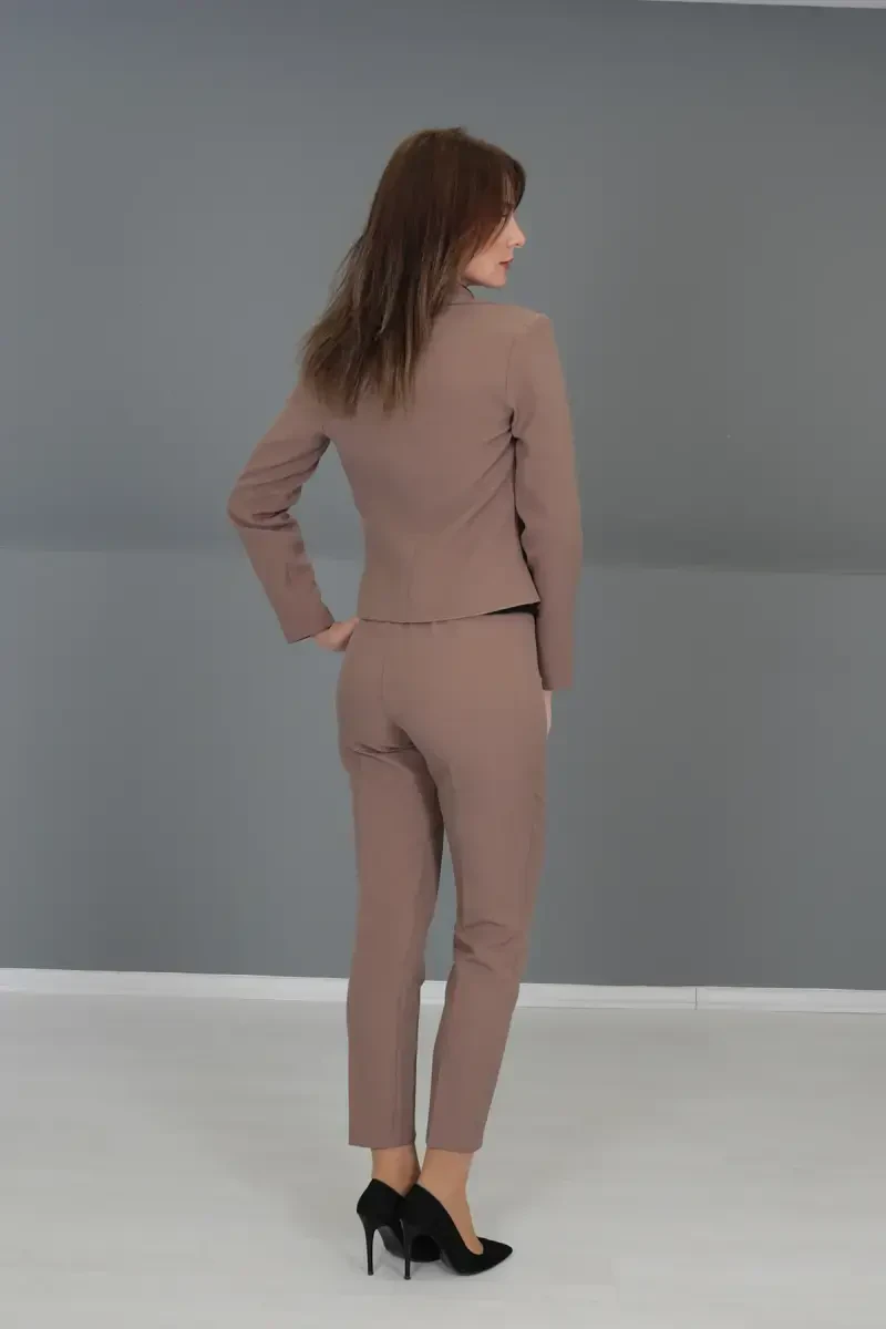 Наш комплект из мини-жакета и брюк-клеш - идеальный выбор для тех, кто ищет стиль и комфорт. Этот комплект, который создаст энергичный образ своим персиковым цветом, дополнит ваш стиль как в повседневной жизни, так и по особым случаям.