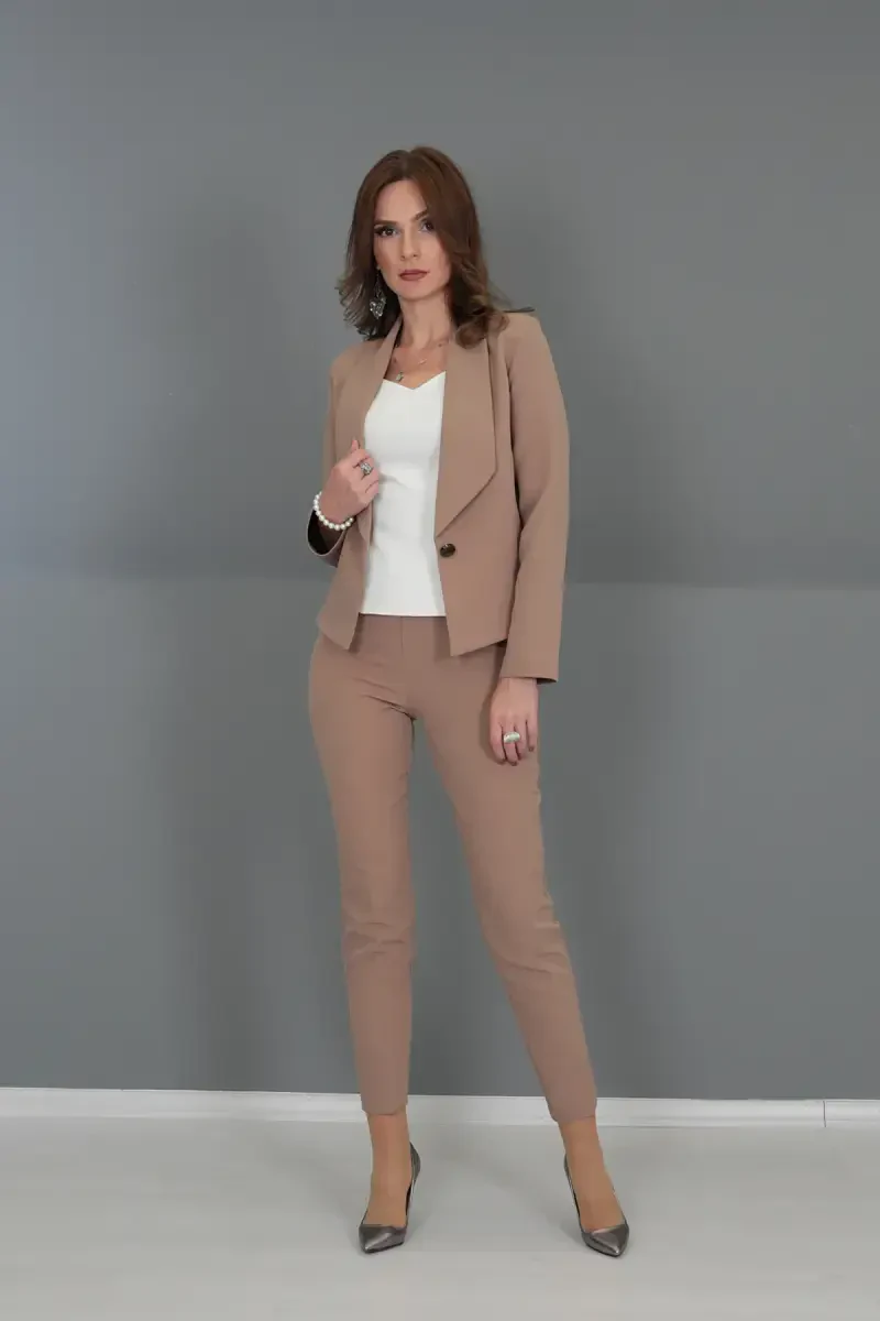 Наш мини-костюм с жакетом и брюками-дудочками – это особый дизайн, сочетающий в себе элегантность и комфорт. Этот костюм в светло-коричневых тонах будет сопровождать вас в любой обстановке, от повседневной носки до особых мероприятий. Этот костюм, предлагаемый с гарантией ÖNDER ÖZSOY, станет незаменимой вещью в вашем гардеробе благодаря высококачественной ткани и современному крою. Элегантный вид мини-жакета и удобство брюк-дудочек обеспечивают ваш комфорт в течение всего дня, позволяя вам не жертвовать своим стилем. Костюм состоит из двух частей: мини-жакета и брюк-дудочек. Мини-жакет имеет стильный вид благодаря пуговицам спереди, а эластичная талия и боковая молния на брюках обеспечивают простоту использования. Этот костюм – идеальный выбор для женщин, которые хотят быть одновременно стильными и удобными. Пожалуйста, имейте в виду, что цвет может незначительно отличаться из-за разницы в освещении во время студийной съемки. Этот костюм собственного производства предлагает качество и элегантность вместе. Благодаря смесовой ткани из 40% хлопка, 50% полиэстера и 10% эластана он прочный и удобный. Ткань костюма позволяет вам чувствовать себя комфортно в течение всего дня, а также придает стильный вид. Этот костюм подходит для любого типа фигуры благодаря различным вариантам размеров. Независимо от того, носите ли вы его для повседневного использования или для особого случая, этот костюм всегда позволит вам выглядеть стильно и ухоженно. Сочетание мини-жакета и брюк-дудочек сделает вас заметной в любой обстановке. Вы можете выразить свой собственный стиль, сочетая костюм с различными аксессуарами и обувью. Этот стильный костюм станет одним из самых любимых предметов вашего гардероба. Выберите наш мини-костюм с жакетом и брюками-дудочками, чтобы создать свой собственный стиль и подчеркнуть свою элегантность. Этот костюм, сочетающий в себе современный и классический стили, понравится каждой женщине. Это инвестиция, которую вы сможете использовать долгие годы благодаря специальным дизайнерским деталям и качественной отделке.