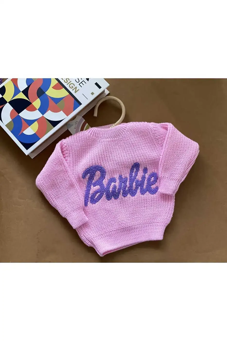 MiniBonClub Oversize Qiz Chaqa va Bolalar Uchun Triko Ko'ylak - Pushki