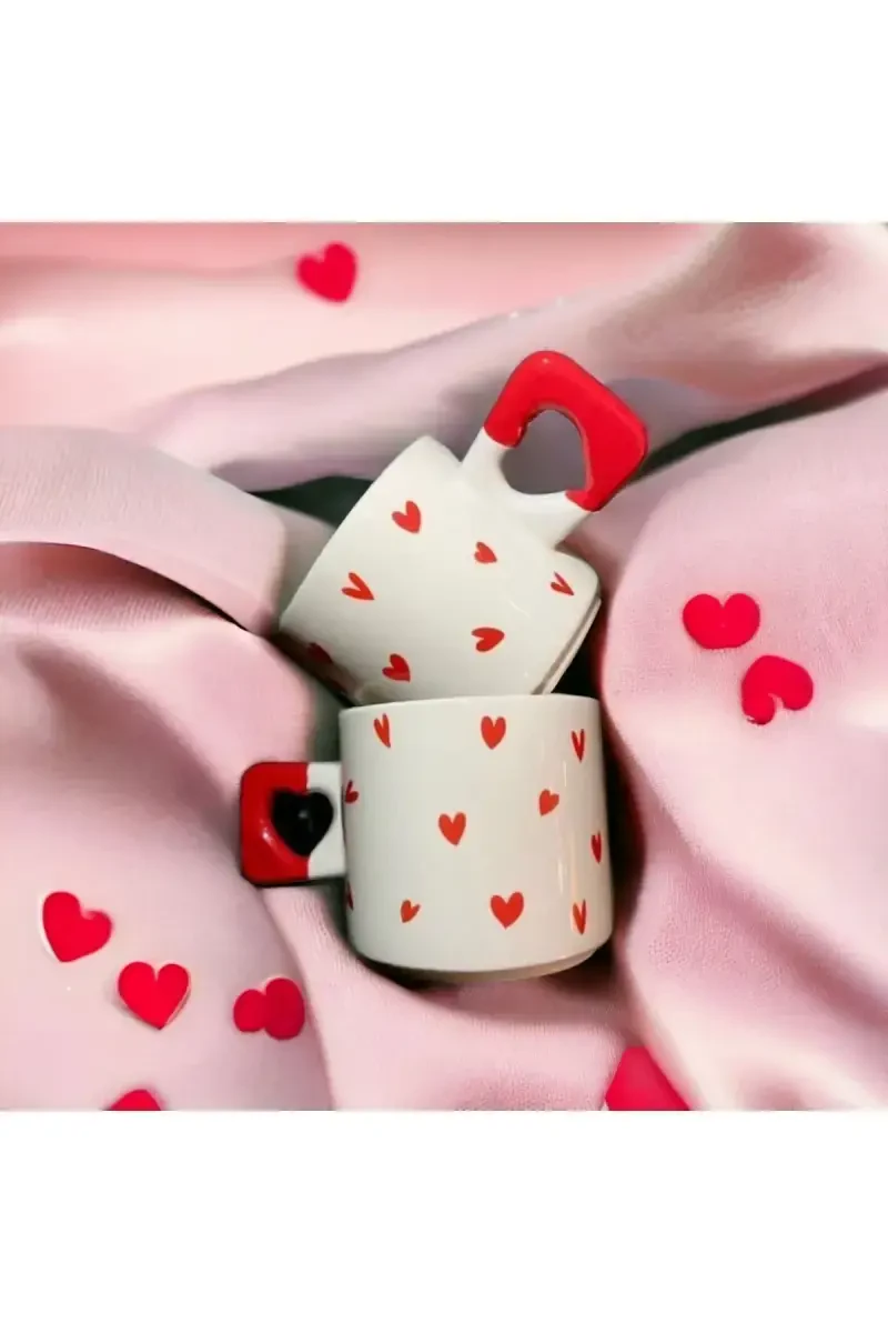 Минималистичная пара красных сердец ручной работы из натуральной керамики с сердечным рисунком / кружка