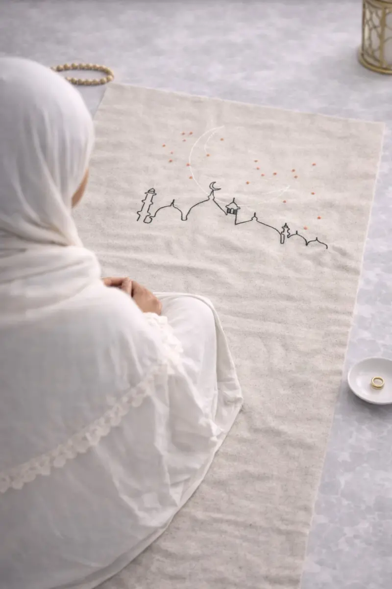 Минималистский вышитый льняной коврик для намаза - Подарочный коврик для приданого