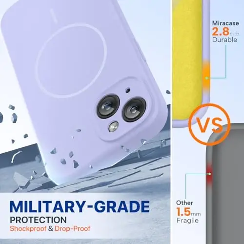 Miracase Magnetic for iPhone 15 Plus Case, [Soft Anti-Scratch Microfiber Lining], Magnetic for MagSafe, Liquid Silicone Shockproof Drop Protection Phone Case for 15 Plus, Light Purple