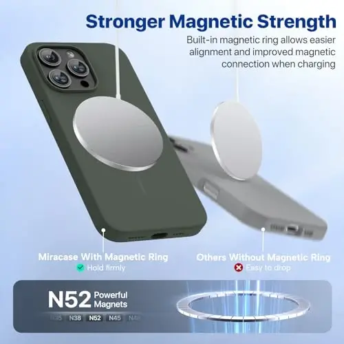 Miracase Magnetic for iPhone 15 Pro Max Case, [Soft Anti-Scratch Microfiber Lining], Compatible with MagSafe, Liquid Silicone Case Shockproof Drop Protection Phone Case for 15 ProMax, Dark Green