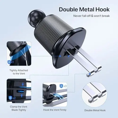 Miracase Phone Holders for Your Car with Metal Hook Clip, Air Vent Cell Phone Car Mount, Hands Free Universal Automobile Cradle Fit for iPhone Android and All Smartphones, Classic Black