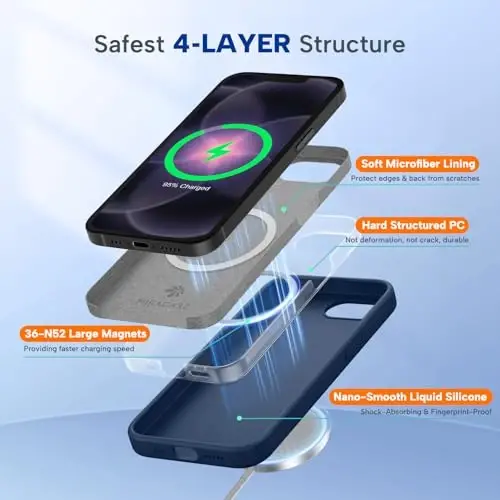 【Compatible】Liquid Silicone Case only compatible with iPhone 17e/16e. Can be adapted to wireless charging with magnetic function 【Durable Liquid Silicone Case】Liquid silicone rubber,surface layer smooth. Upgraded Thickness: 2.8mm.(Normal just 1.5 mm).Four-layer structure design anti-fingerprint,scratch-resistant performance, drop protection 【Full Body Protection】 Upgraded camera protection, outer lip design, slightly higher than the screen and camera, protect your iPhone screen or camera dropping or laying face down on surface 【Multi-color Options】We provide a variety of fashionable colors to match for iPhone 17e/16e. Choose multiple phone cases, and then you're free to match them according to the Outfit of the Day 【Lifetime Replacement】Offers Lifetime Replacement for the product. Come and get a replacement if the case is damaged