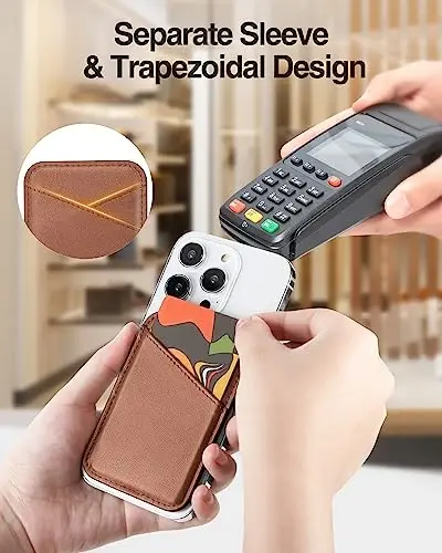 Miroddi for MagSafe Wallet is a magnetic card holder solution designed for the iPhone 16/15/14/13/12 Series. Featuring powerful magnets for effortless attachment to the back of your phone, this ultra-slim wallet is ideal for those seeking a stylish and functional accessory. With a thickness of only 0.12 inches, it doesn't add unnecessary bulk to your phone, while the high-quality vegan leather material offers a classic look and premium feel. The delicate craftsmanship ensures the wallet maintains its elegant appearance over time. Two independent card slots allow you to securely carry 2-3 cards or some cash. Thanks to its strong magnets, you can use your wallet safely without worrying about it falling off. The Miroddi MagSafe wallet offers the best solution against unexpected risks from RFID and NFC scans. It protects your credit cards from unauthorized scanners and provides degauss protection to prevent your cards from losing their magnetic properties. Compatible with magnetic phone cases, you can also attach this wallet to a MagSafe-enabled transparent or silicone case to create a unique look. Compatible with iPhone 16, 16 Pro, 16 Pro Max, 16 Plus, iPhone 15, 15 Pro, 15 Pro Max, 15 Plus, iPhone 14, 14 Pro, 14 Pro Max, 14 Plus, iPhone 13, 13 Pro, 13 Pro Max, iPhone 12, 12 Pro, 12 Pro Max models. With its brown color, the Miroddi MagSafe Wallet suits every style, offering practicality and elegance in one. This slim and useful wallet, which will make your daily life easier, is the most stylish way to carry your cards safely. Designed with Miroddi quality, this wallet is made of durable materials for long-lasting use. Whether for yourself or your loved ones, the Miroddi MagSafe Wallet is a perfect gift option that will make your life easier and complete your style.